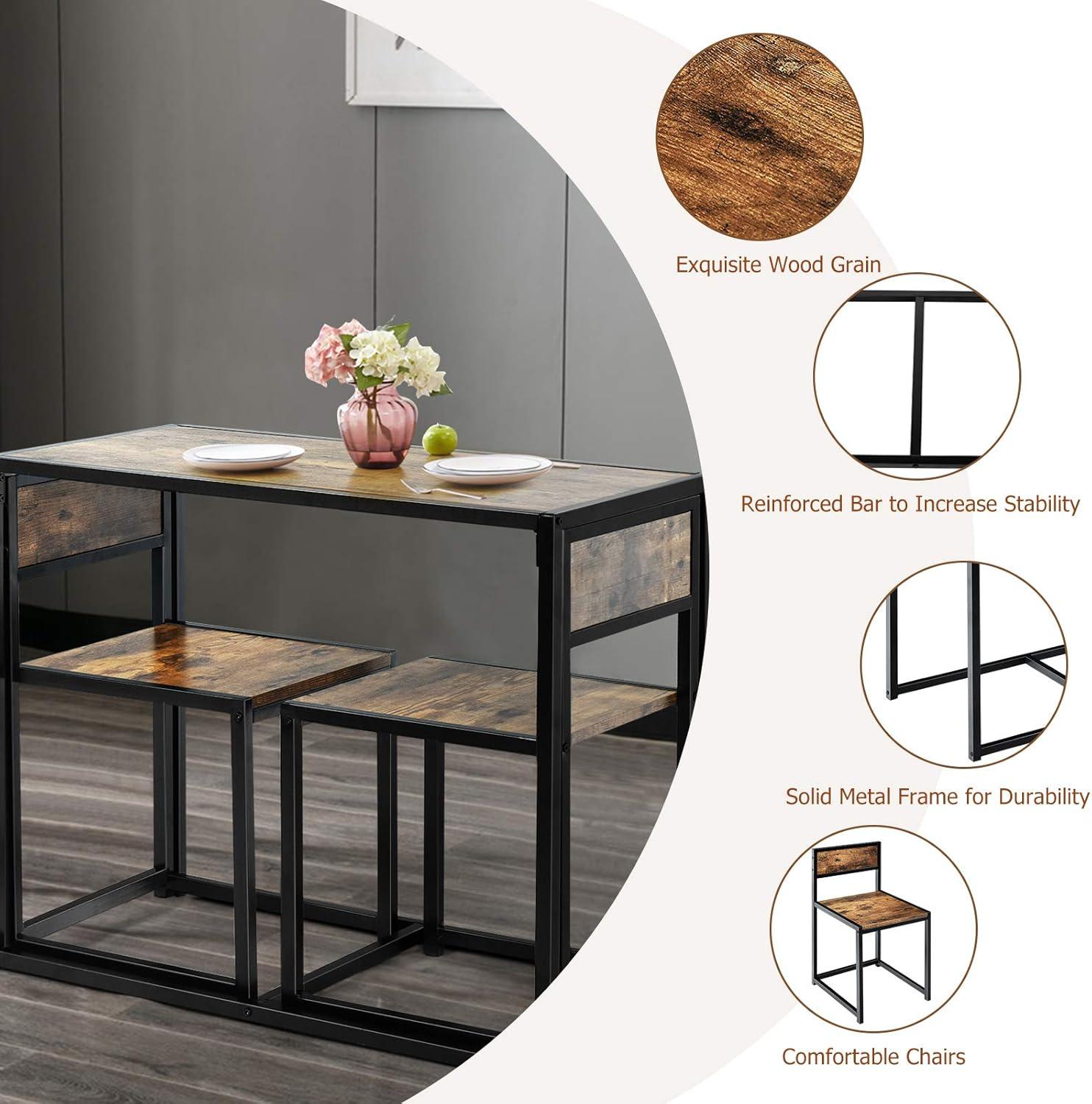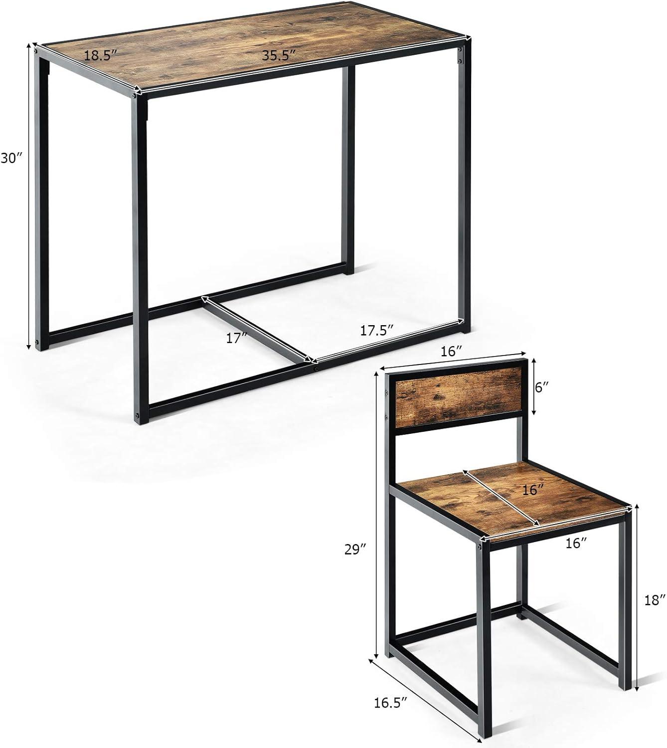 Space Saving 3-Piece Set: The dining table with 2 Chairs which allows you to create your own bistro area at home. With compact size and space-saving design, 2 chairs can be nicely tucked under the table when not in use.