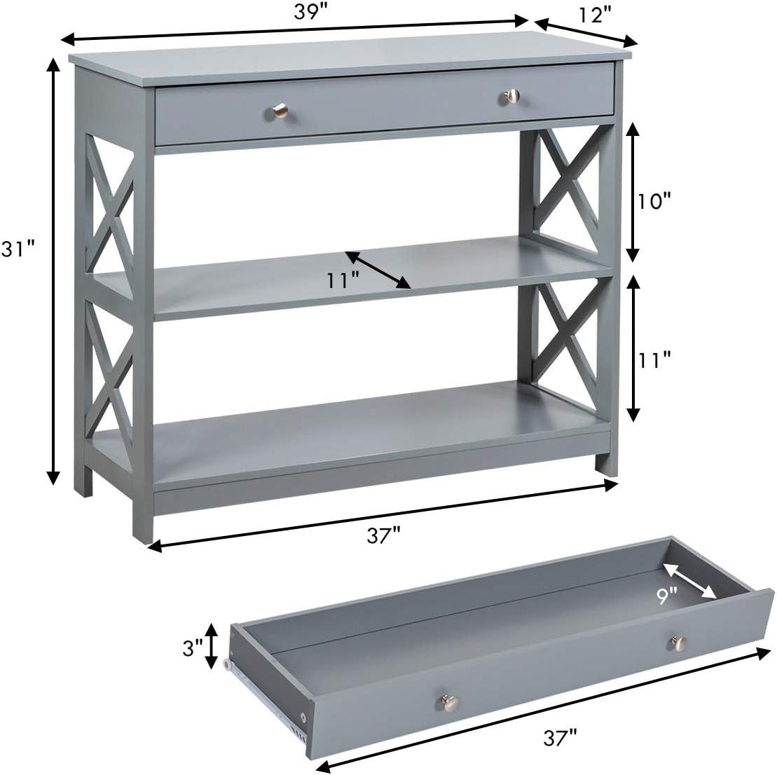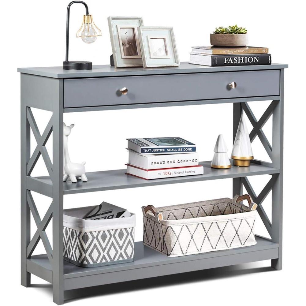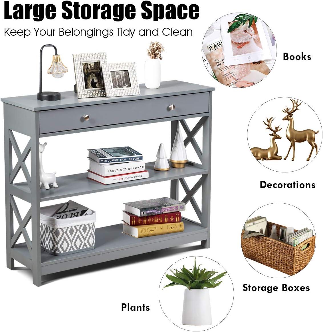 Giantex 3-Tier Console Table with Drawers, Narrow Entryway Table w/Storage Shelves, X-Design Sofa Side Tables for Hallway, Modern Entry Tables for Foyer Living Room Bedroom (Black)(Grey)