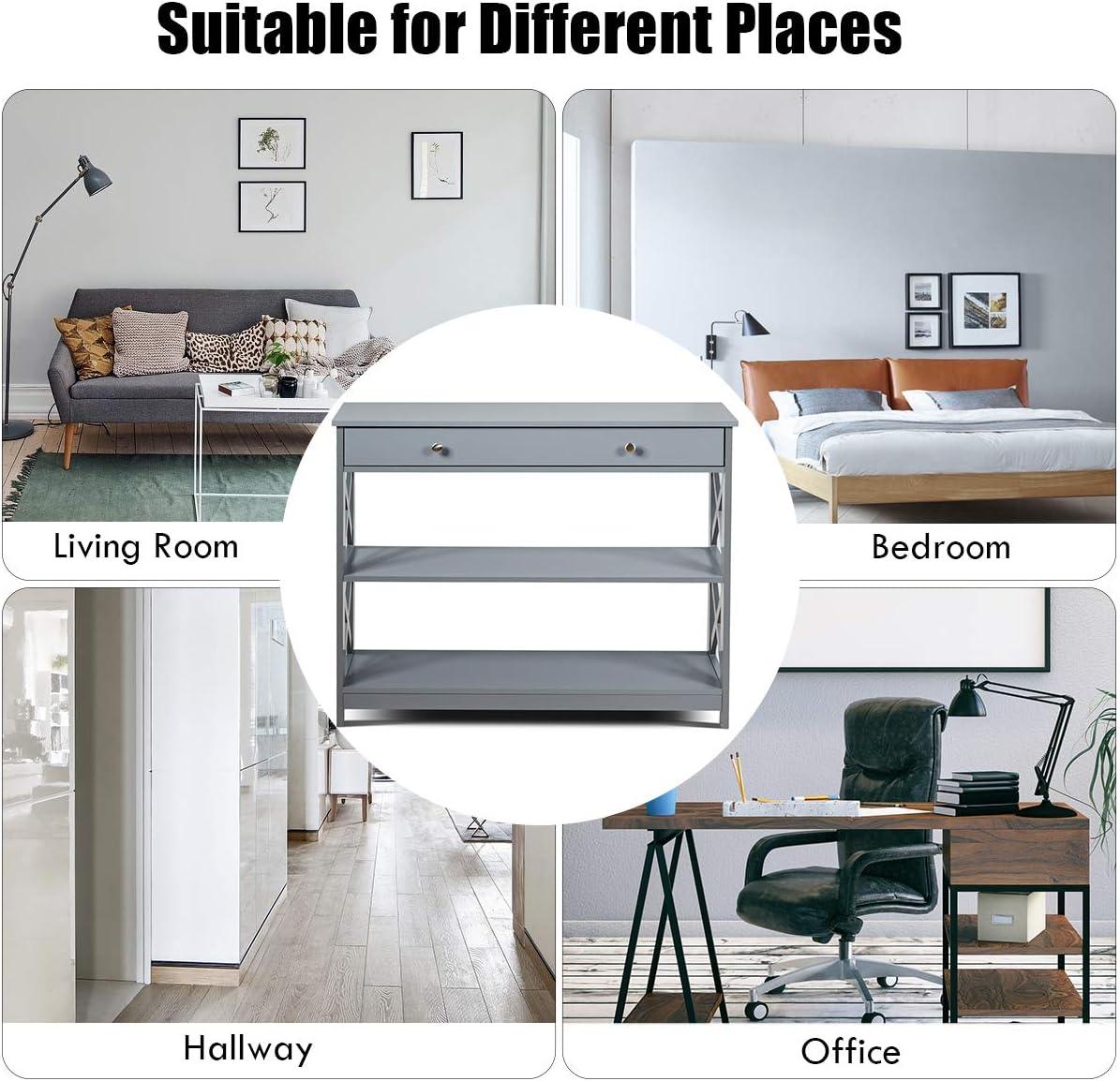 【Sturdy Construction】 Made of solid MDF with odorless painting finish, this 3-tier console table stands the test of time and comes with strong loading capacity up to 209 lbs. And the X-shape structure on both sides provides extra strong stability to prevent wobble.