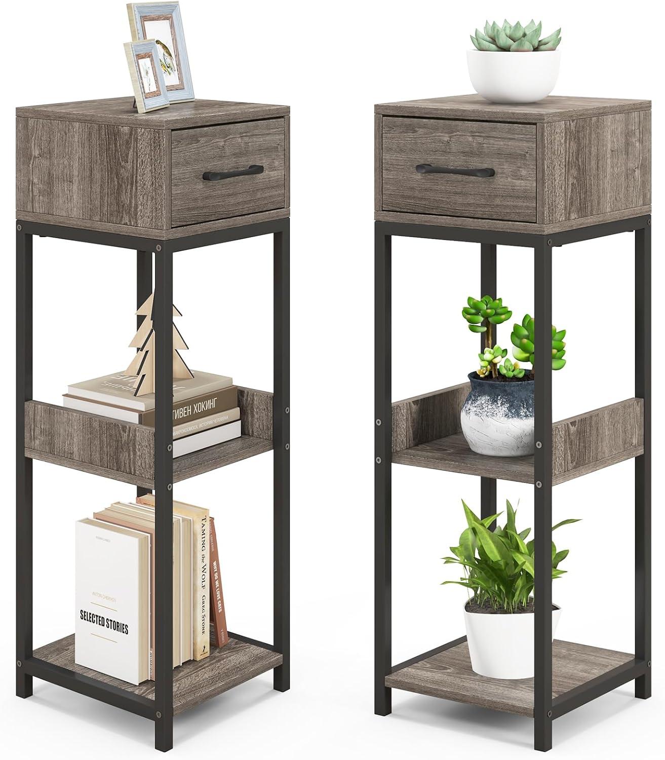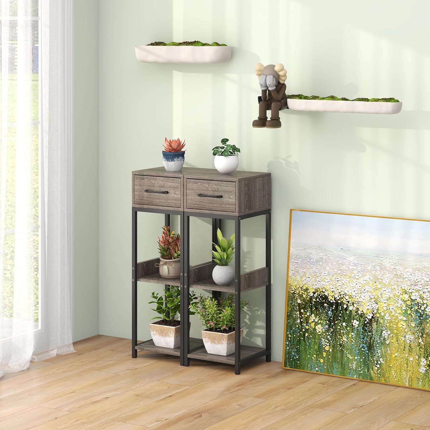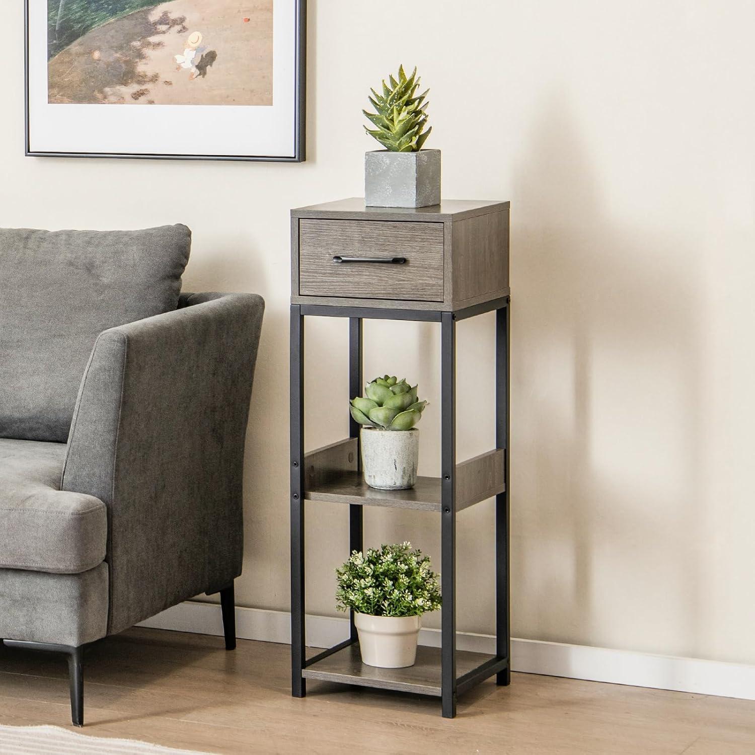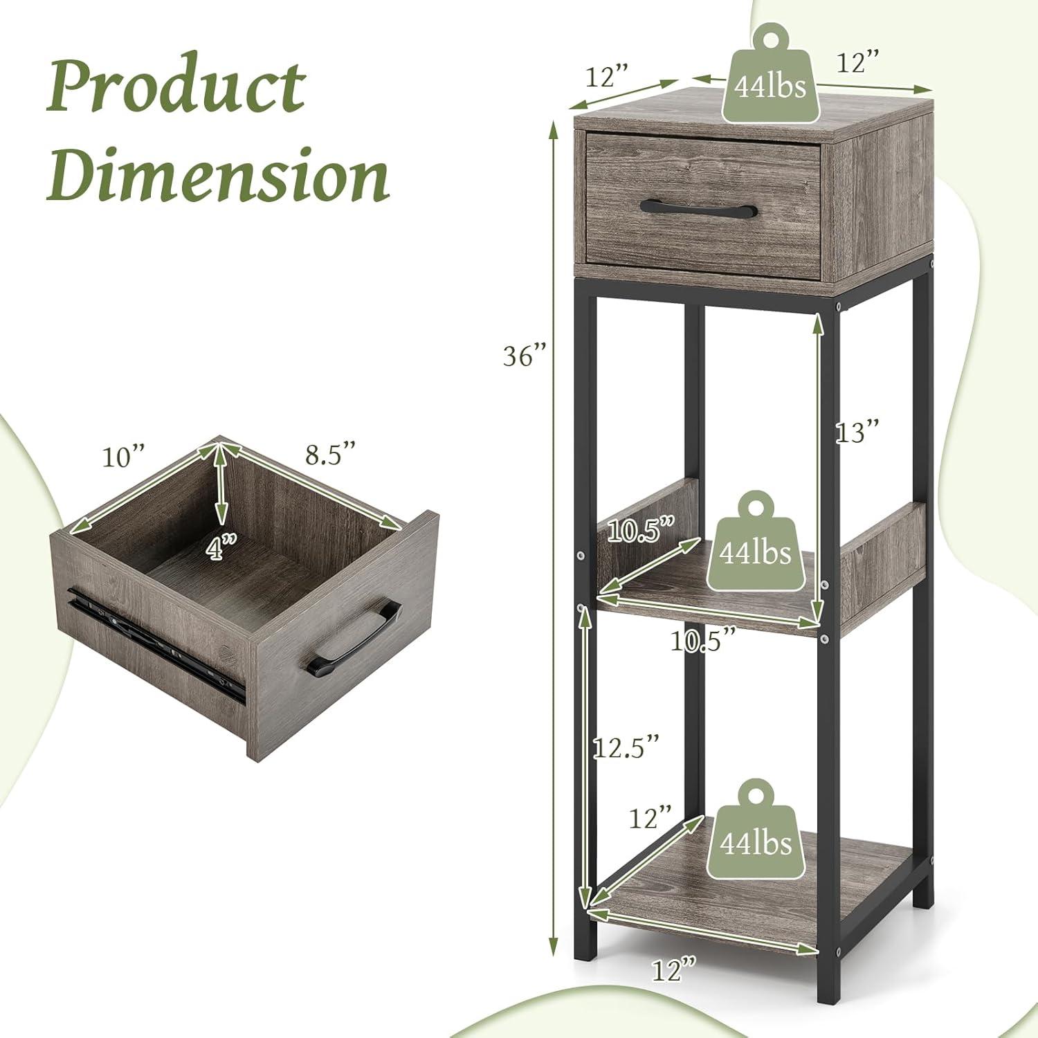 Giantex 3 Tier Tall Plant Stand Indoor, 36 Inch Corner Plant Holder with Drawer & Metal Frame, Modern Plant Shelf for Multiple Flower Pots, Square Plant Tables for Balcony, Living room, 1 Pack(Grey-Top Drawer)