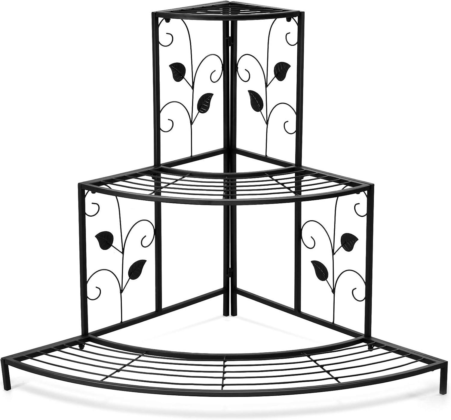 Giantex 3 Tiers Corner Shelf Metal Plant Stand, Stair-Step Style Flower Pot Display, Ladder Plant Display Rack, Quarter Round Plant Shelf for Indoor Outdoor Use