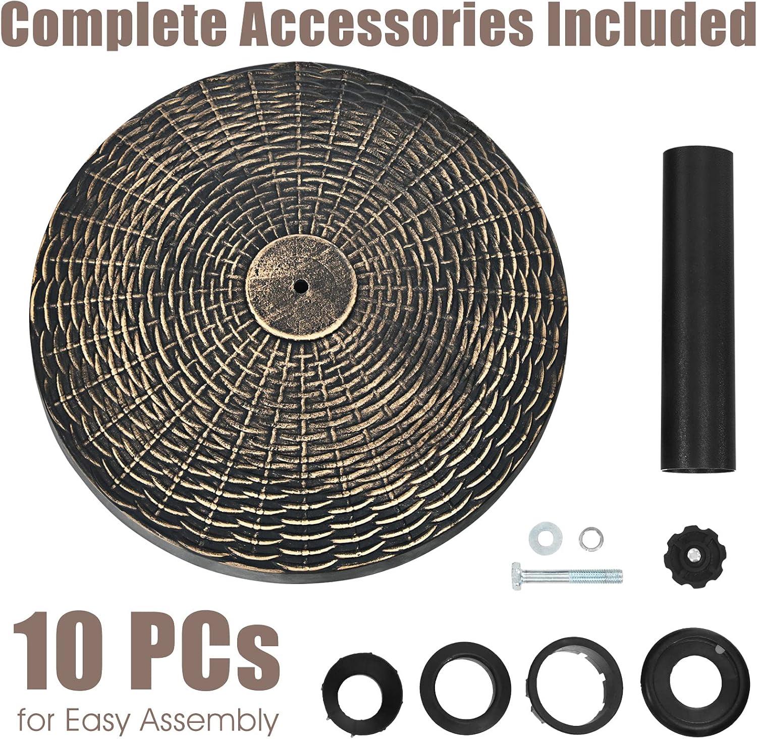 【Adjustable Rotary Knob】: Featuring an adjustable knob, this umbrella base ensures a secure and stable fit for your umbrella pole, providing additional support to prevent any wobbling. We highly recommend using this base in combination with a patio table for optimal stability and safety.