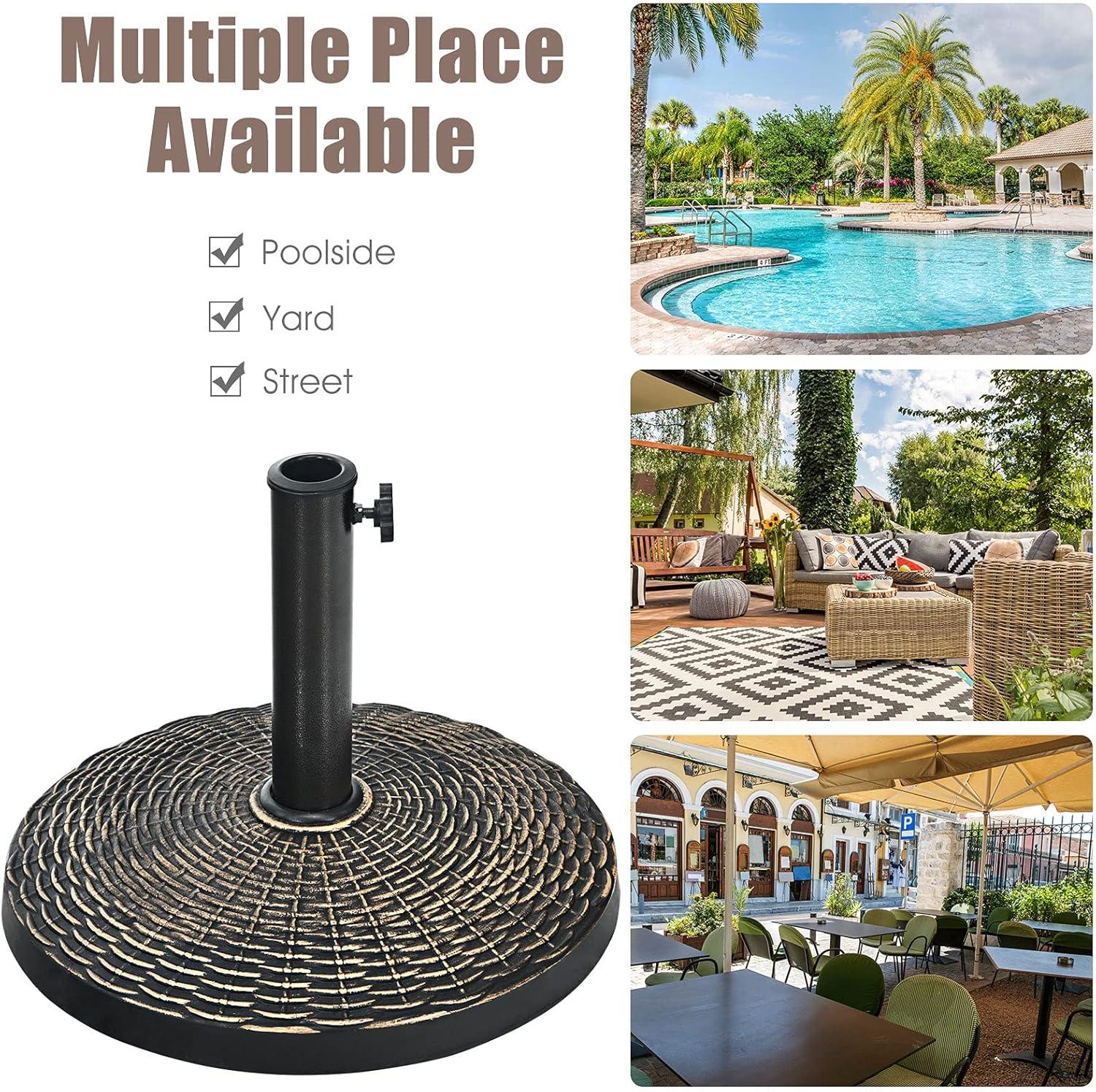 Giantex 31 lbs Patio Umbrella Base, 18″ Round Market Umbrella Stand for 1.5”-1.9” Umbrella Poles, Heavy Duty Resin Base with Metal Support Holder for Deck Garden Poolside (31 lbs)(31.0 Pounds)
