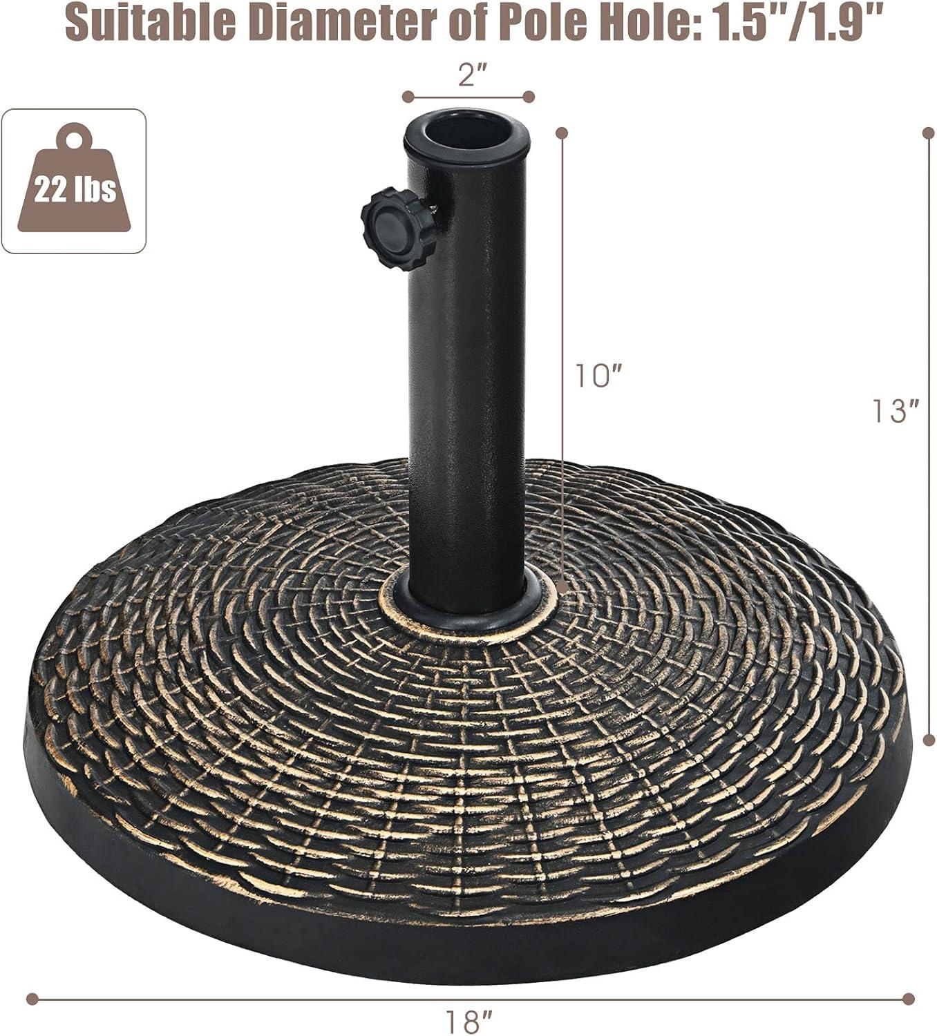 Giantex 31 lbs Patio Umbrella Base, 18" Round Market Umbrella Stand for 1.5''-1.9'' Umbrella Poles, Heavy Duty Resin Base with Metal Support Holder for Deck Garden Poolside (31 lbs)(22.0 Pounds)