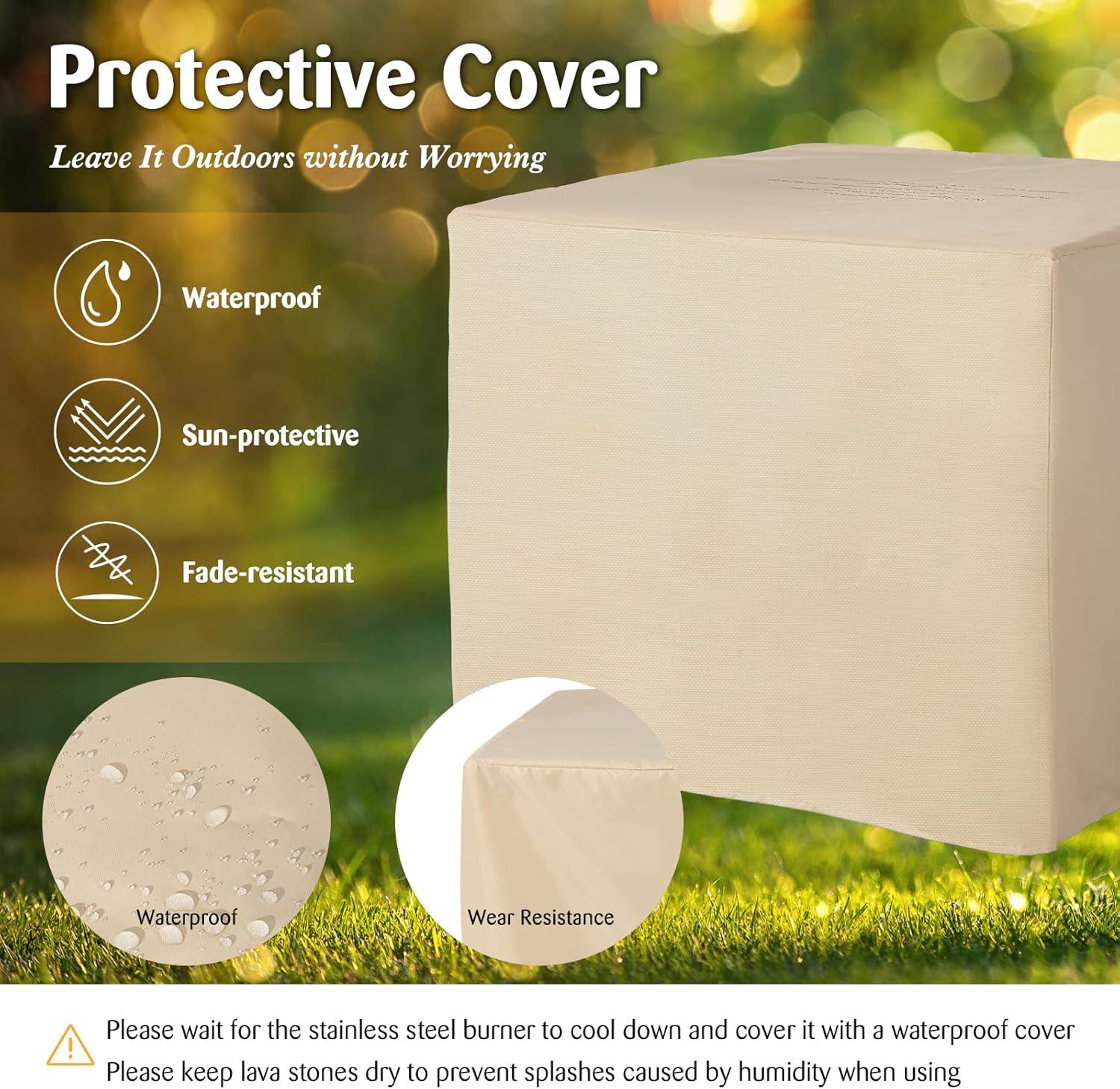 [ What You Will Get ]: The package includes a cover, an instant touch-up pen, a natural gas orifice and 2 boxes of lava stone. It is worth mentioning that the protective cover is waterproof, sun-protective and fade-resistant. Hence, you can cover it with a waterproof cover, then leave it outdoors without worrying.