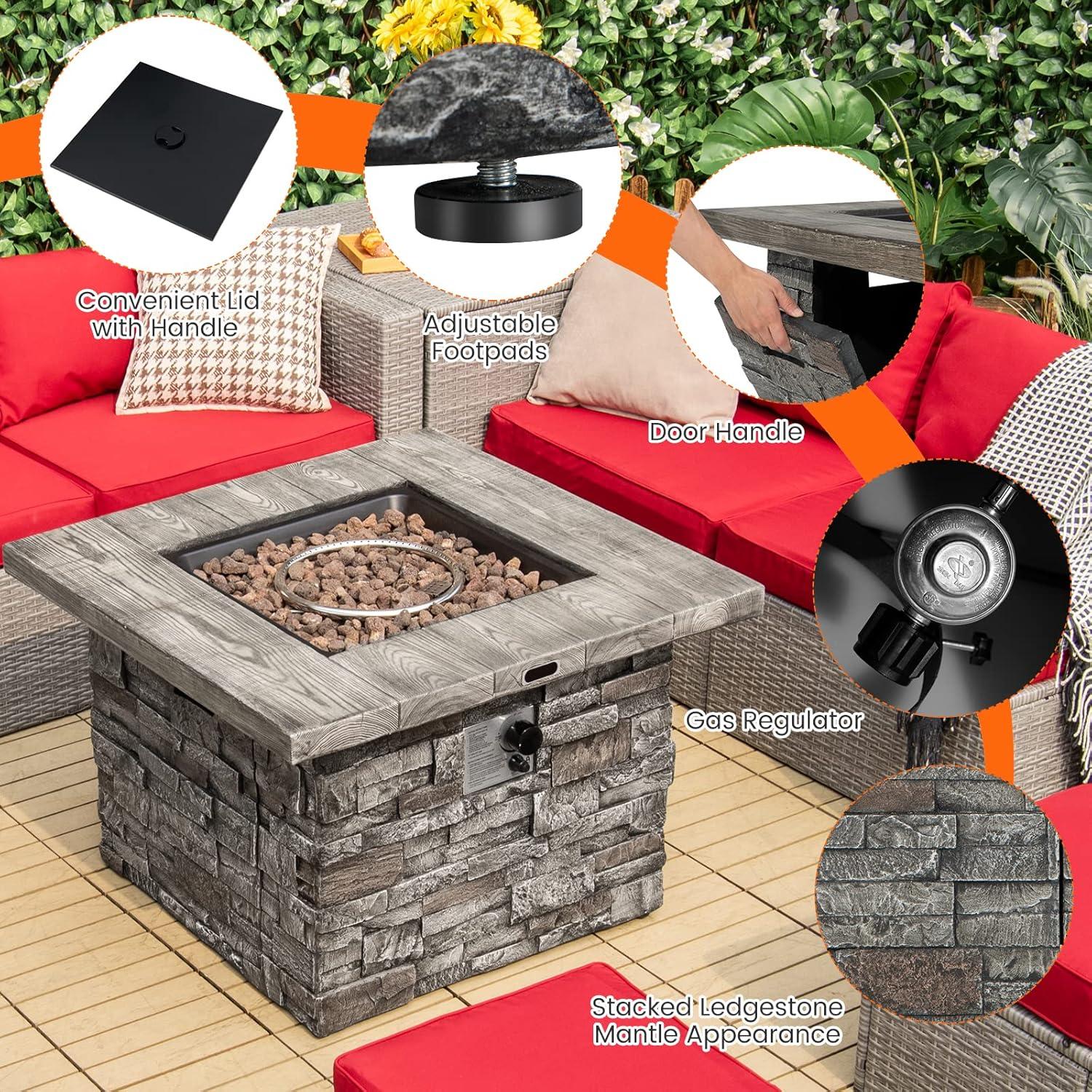 Eye-Catching Appearance: With stone-like appearance and wood-like tabletop, this gas fire pit will always be an eye-catcher in different outdoor occasions. You can place this fire table in backyard, poolside, garden and so on. Furthermore, the anti-slip and adjustable footpads will make the table stand stably and protect the ground from scratches.