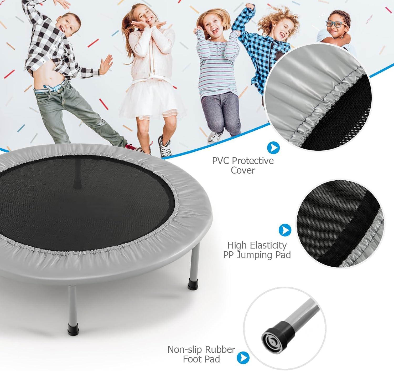 Initiate Details: Every steel pipe leg is equipped with a rubber foot pad, which is anti-slip and can greatly enhance the overall stability when in use. It can also prevent the scratches on the floor. Moreover, there is little noise when you jump on it so that you can totally enjoy the bounce without worrying about disturbing others.