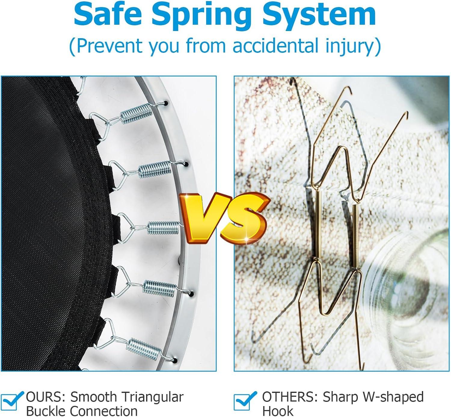 Safe & Reliable Use: Constructed with high quality steel frame, this rebounder feature great sturdiness with a weight capacity up to 330 lbs. It is also very durable which is suitable for a long time use. Meanwhile, the 32 springs together provide you with strong support and ensure your safety when you enjoy jumping on the mat.