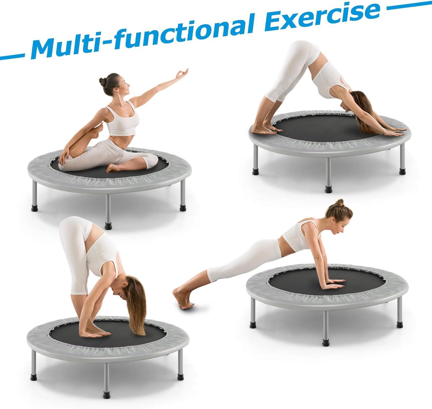 Compact Size & Folding Design: You can easily four-fold this fitness trampoline and it will be into a compact size, which provides you with great convenience to carry outside to yard, gym, etc. or in car and store in narrow spaces such as under bed or sofa, effectively helping you save space when not in use.