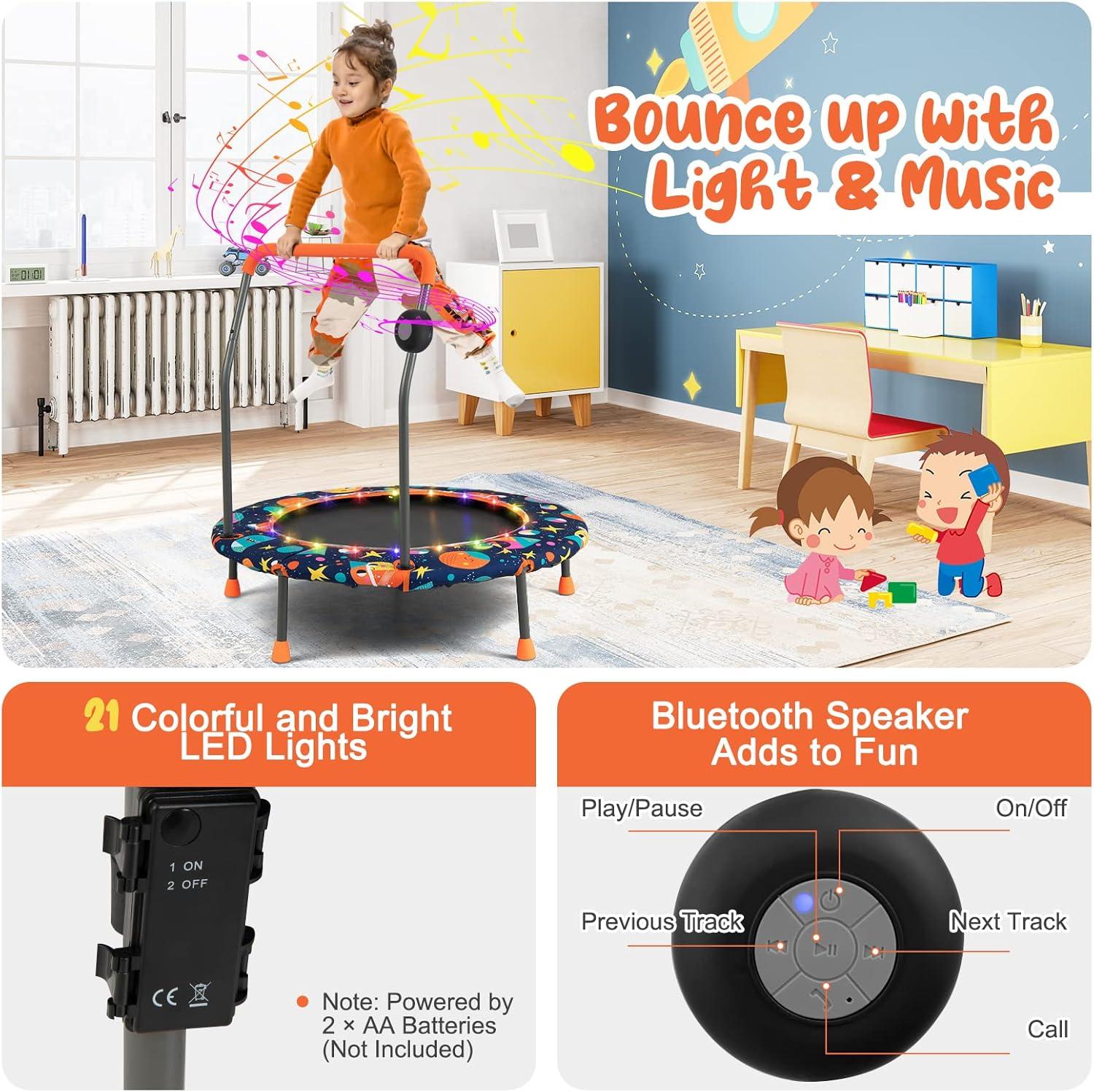 Giantex 36″ Trampoline for Kids, Mini Toddler Trampoline w/Colorful LED Lights & Bluetooth Speaker, Small Rebounder Exercise Trampoline Indoor w/Foam Handle & Padded Cover for Kid Aged 3+(Blue)