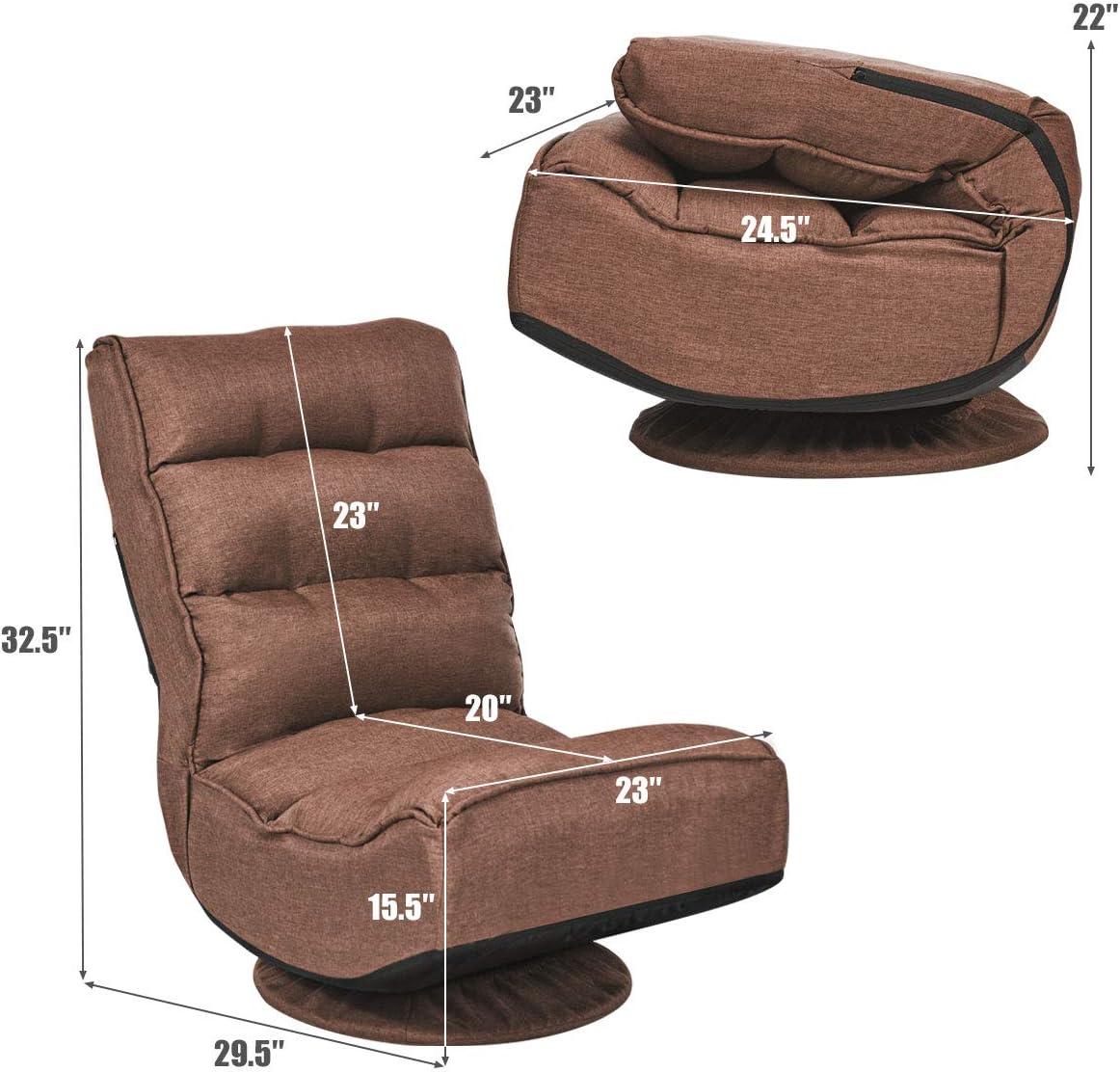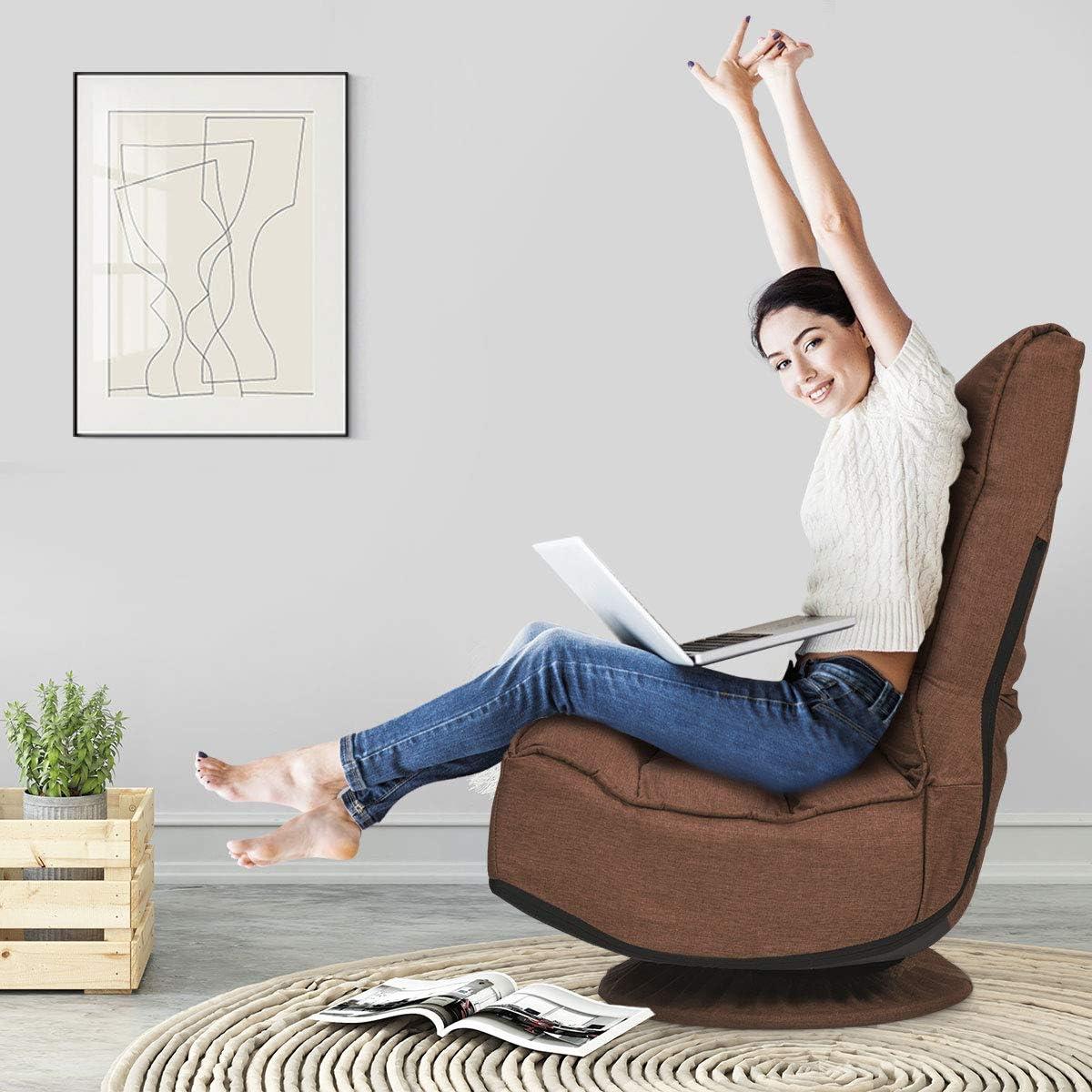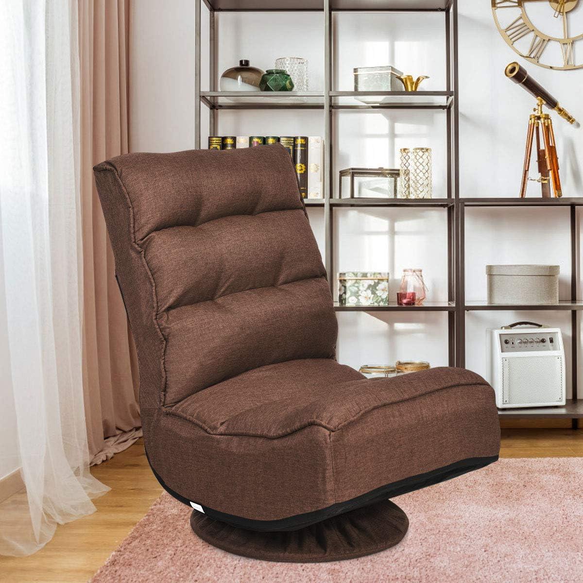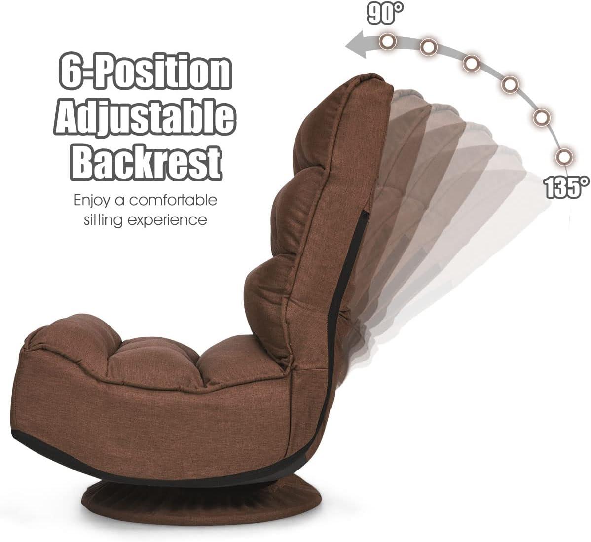 Giantex 360 Degree Swivel Floor Chair, Folding Floor Gaming Chair with 6 Positions Adjustable, Lazy Sofa Lounge Chair w/Tufted Back Support, Video Gaming Chair for Reading TV Watching (Brown)(Brown)