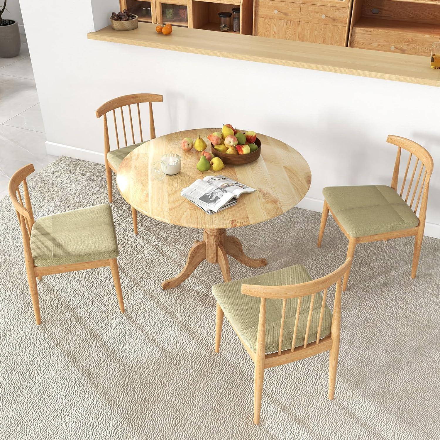 Giantex 39-Inches Round Rubber Wood Dining Table for 4 with Legs, 220 Lbs Capacity, Kitchen Table for Dining Room, Living Room, Restaurant, Dinner, Dinette (Walnut)(Natural)