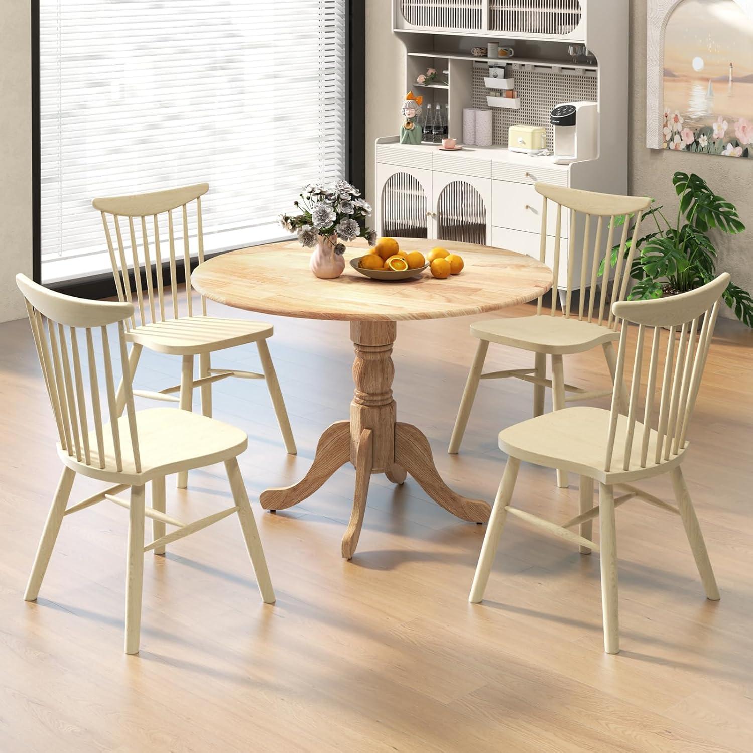 imageGiantex 39Inches Round Rubber Wood Dining Table for 4 with Legs 220 Lbs Capacity Kitchen Table for Dining Room Living Room Restaurant Dinner Dinette WalnutNatural
