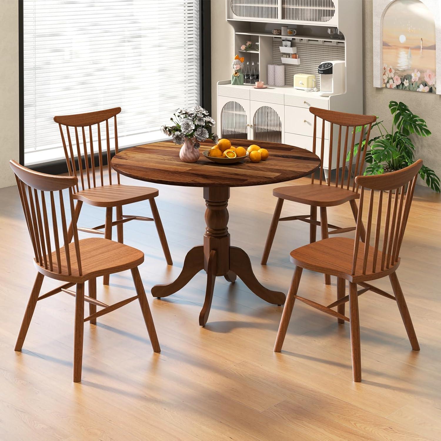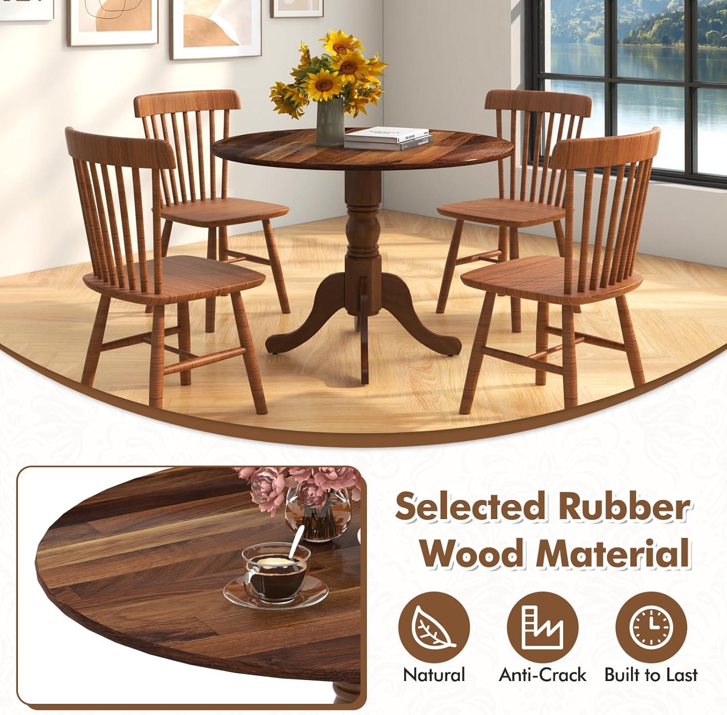 Giantex 39-Inches Round Rubber Wood Dining Table for 4 with Legs, 220 Lbs Capacity, Kitchen Table for Dining Room, Living Room, Restaurant, Dinner, Dinette (Walnut)(Natural)