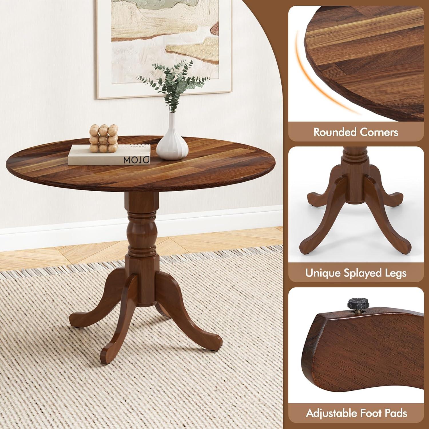 Giantex 39-Inches Round Rubber Wood Dining Table for 4 with Legs, 220 Lbs Capacity, Kitchen Table for Dining Room, Living Room, Restaurant, Dinner, Dinette (Walnut)(Walnut)