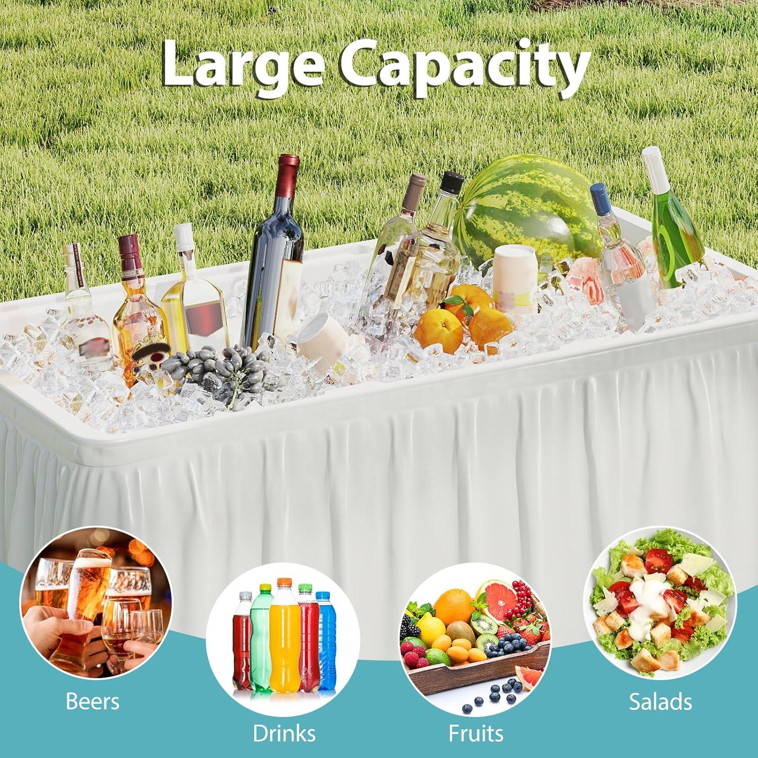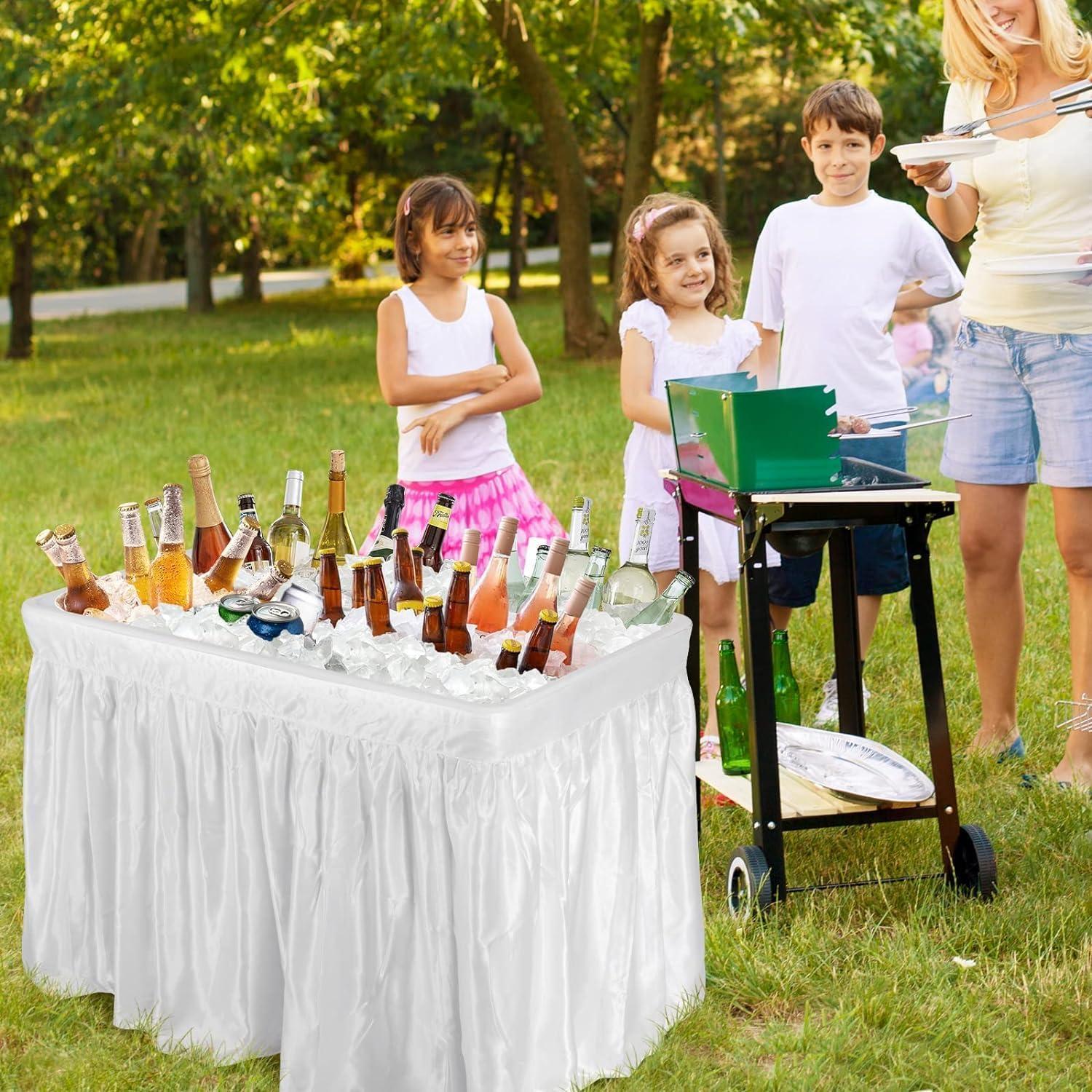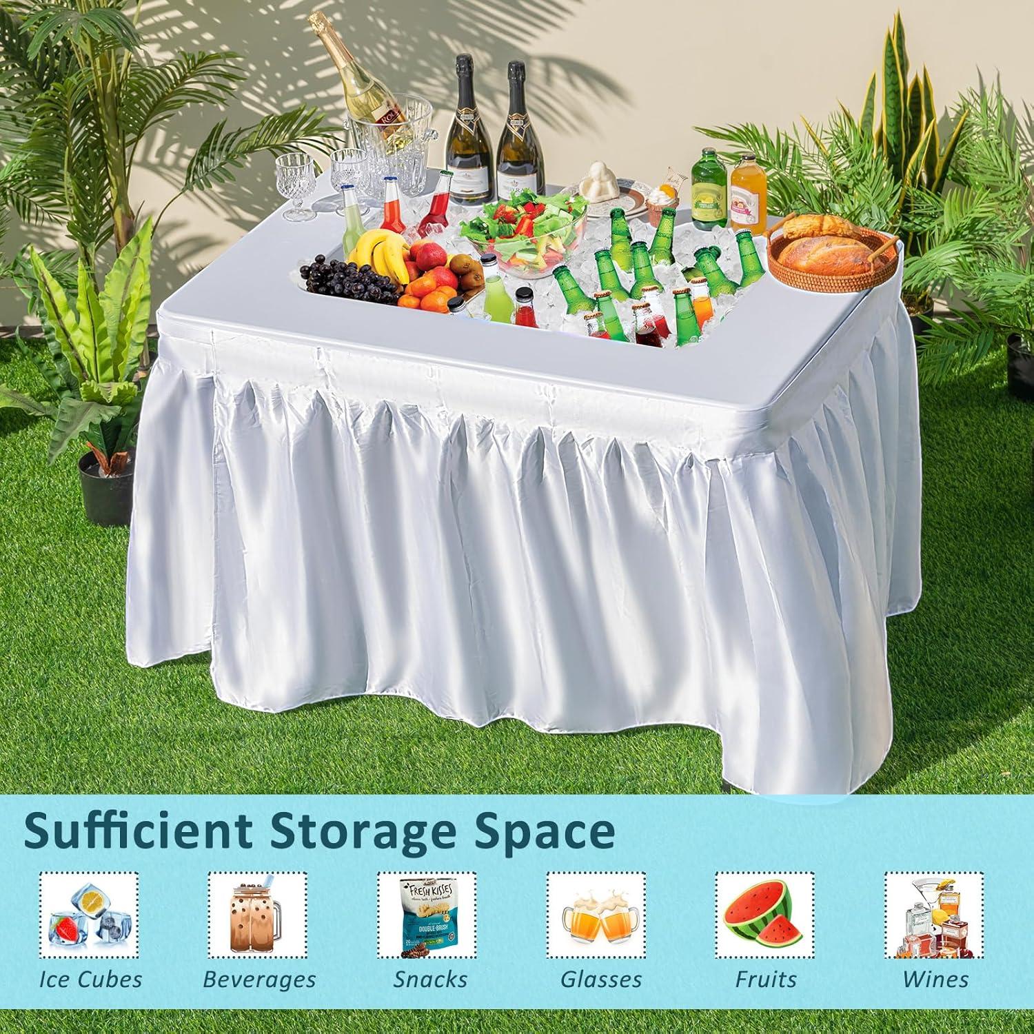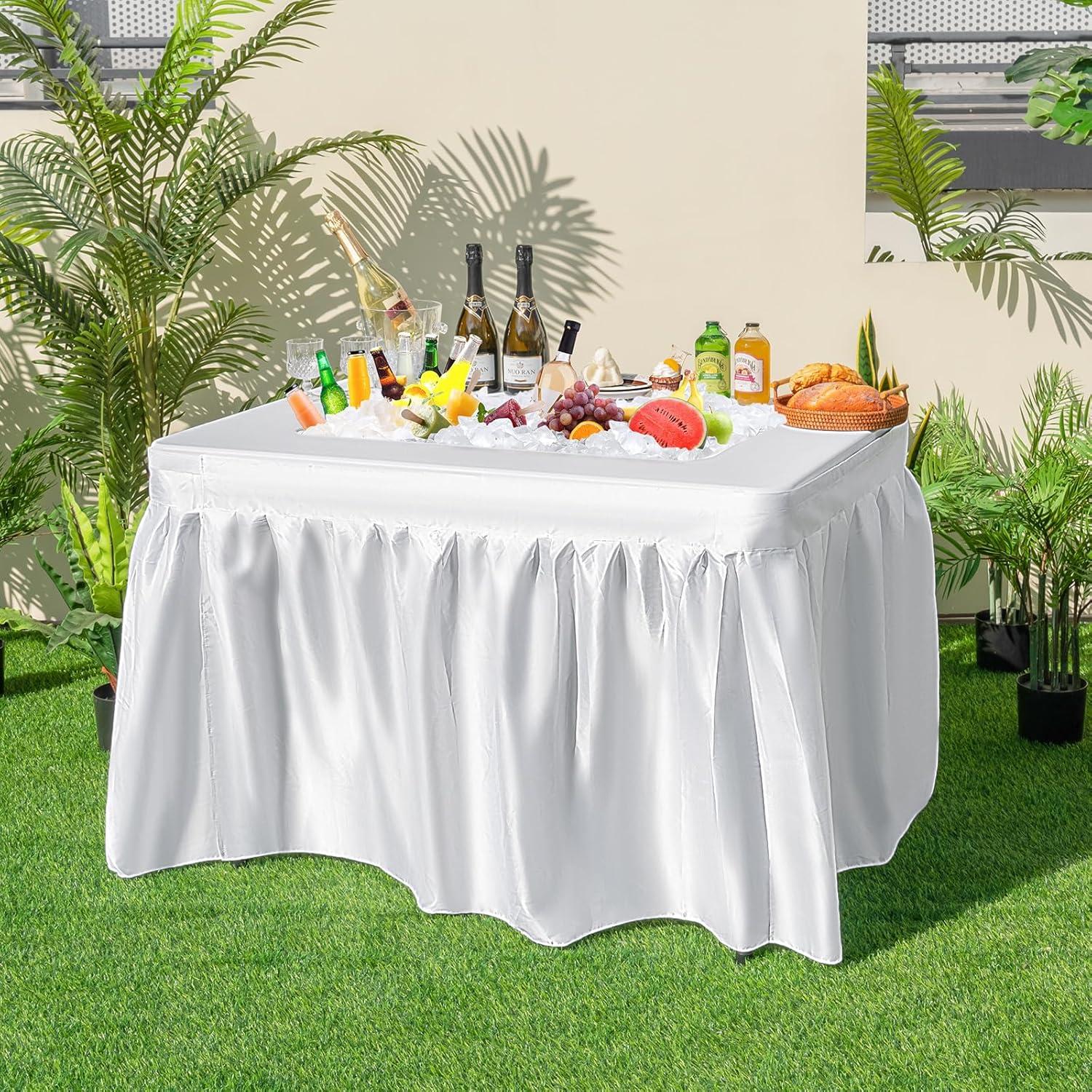 [ Easy Drainage & Extra Skirt ]: Convenient drainage hole and drainage hose help to drain out melted ice when you want to add more ice cubes or chilled beverages. Apart from that, the removable table skirt adds a delicate touch. The lengthened hook and loop fastener helps to fix pleated table skirt into the table.