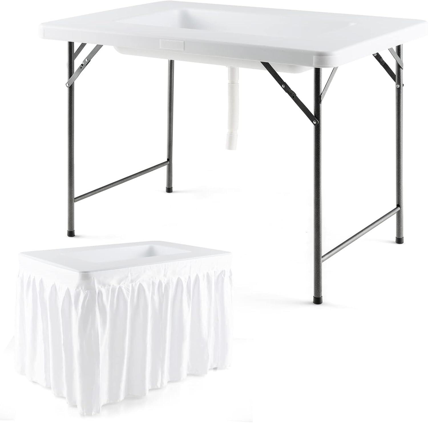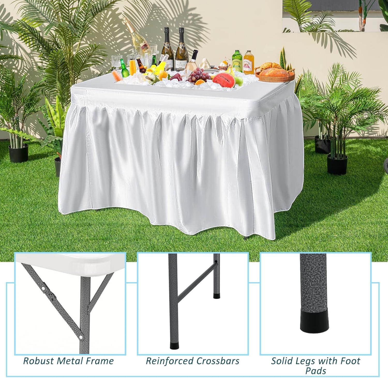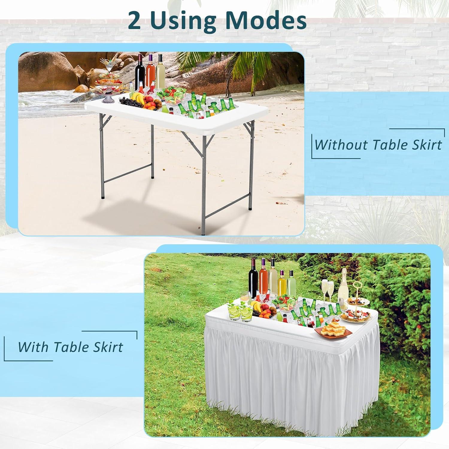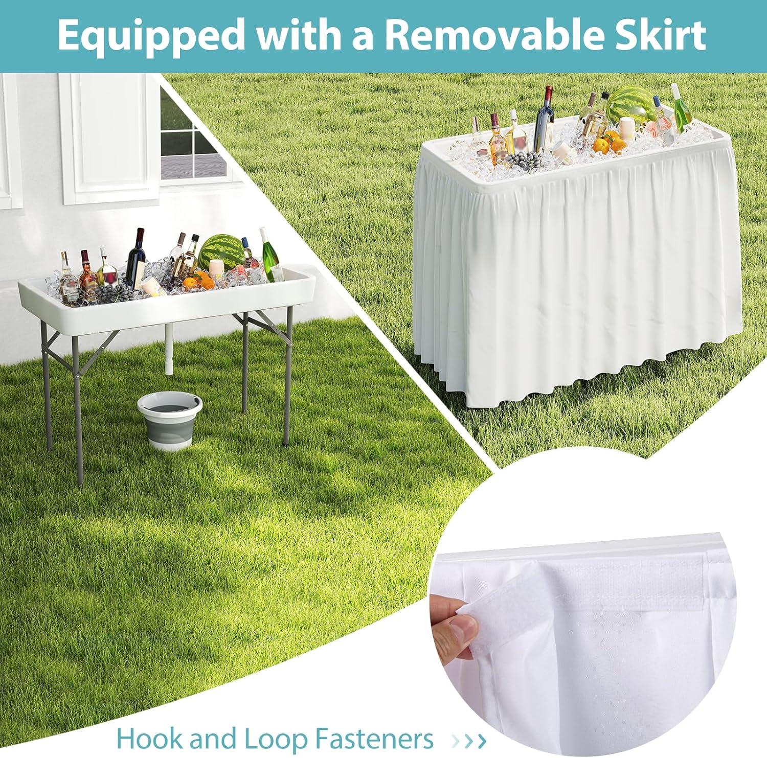 [ Easy Drainage & Extra Skirt ]: Convenient drainage hole and drainage hose help to drain out melted ice when you want to add more ice cubes or chilled beverages. Apart from that, the removable table skirt adds a delicate touch. The lengthened hook and loop fastener helps to fix pleated table skirt into the table.