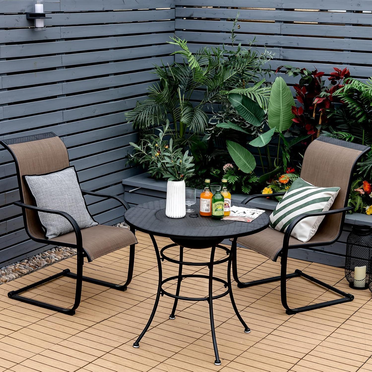 Designed for Stability: Constructed of heavy duty steel frame with rustproof surface, this metal patio dining table not only makes it high temperature resistance for outdoor burning, but also withstands outdoor environment. Besides, it is able to stay stable on the uneven ground because of the adjustable non-slip foot pads.