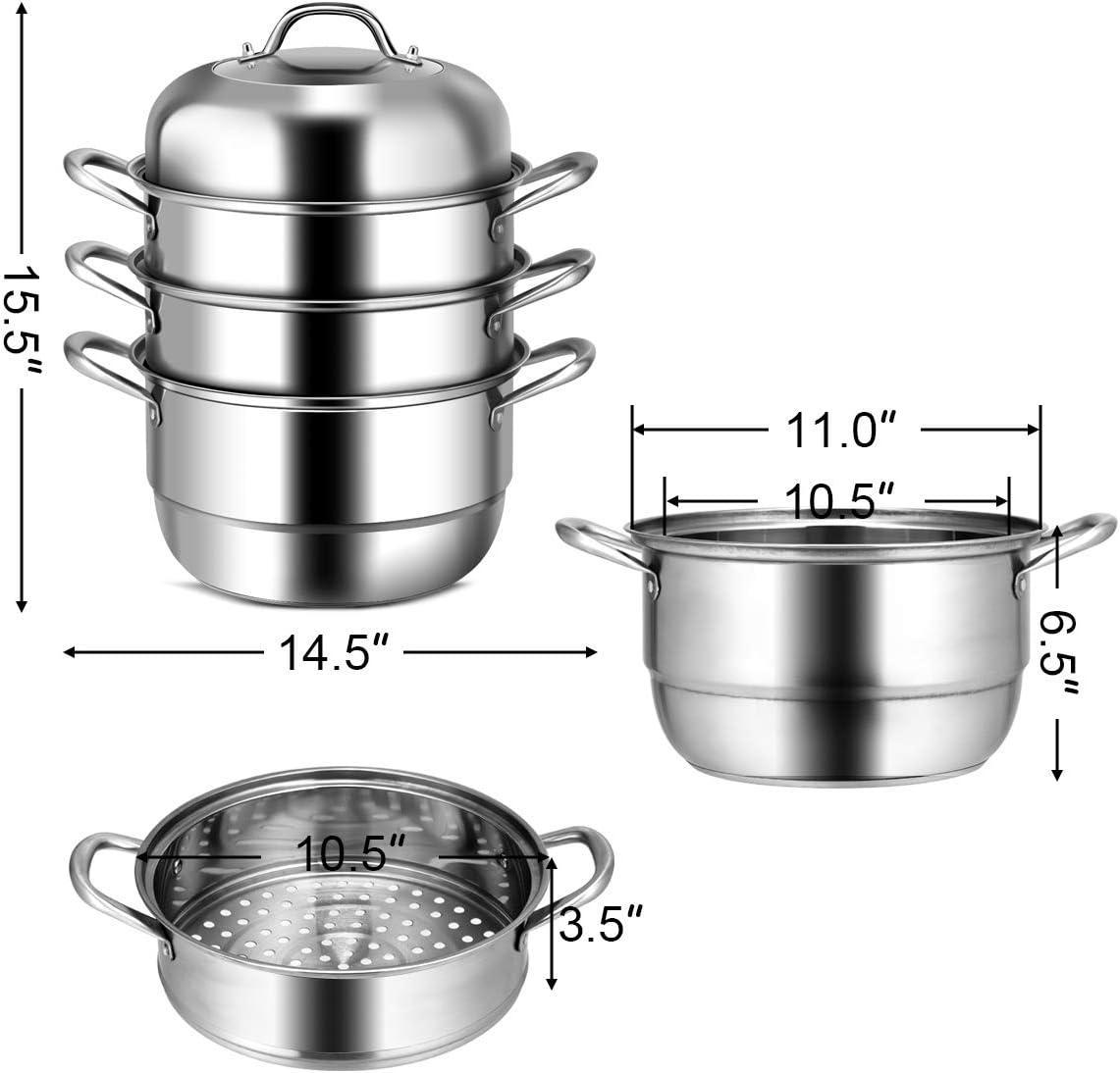 〖4-Tier Steamer Stainless Steel Pot〗: Although you bought one steamer pot, you'll have 4 different functions such soup pot, single layer steamer, double boiler and 4 layer steamer. You can freely combine the layer based on your needs.