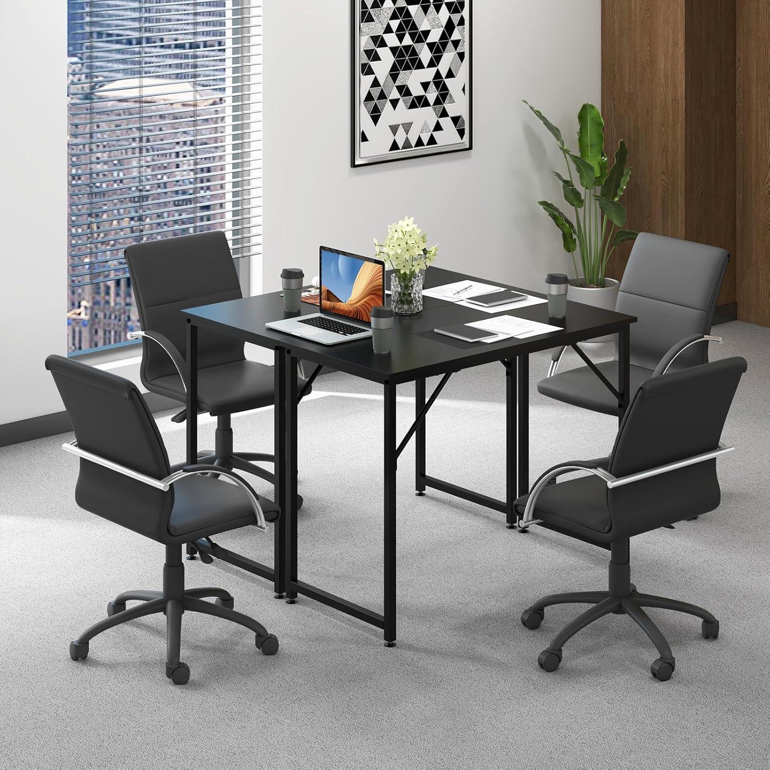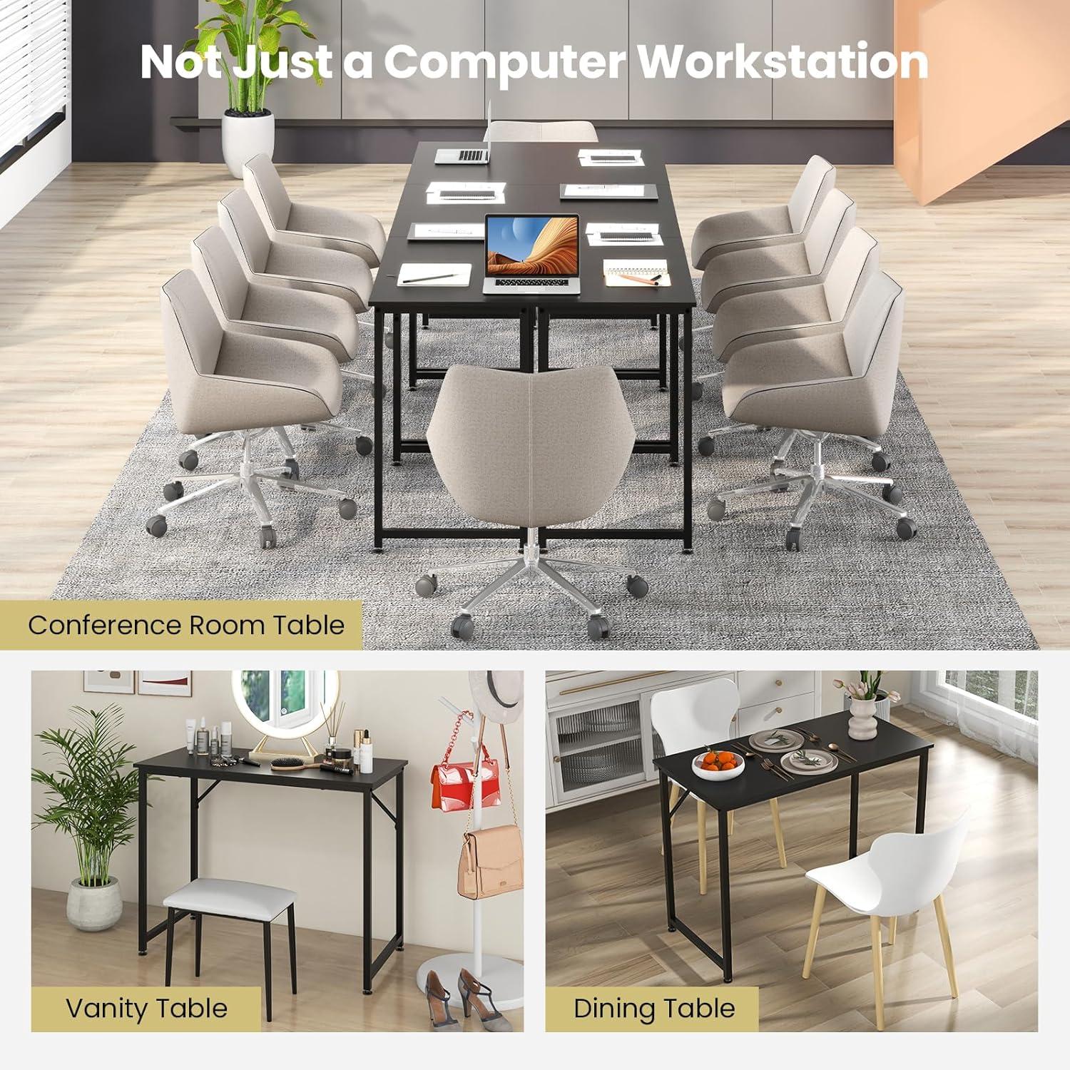 [Not Just a Computer Workstation]: The sleek and modern design of this versatile PC desk seamlessly blends with different occasions. Whether used as a small desk for a bedroom, a dining table, or a vanity table, its adaptability extends to serving as a convenient workspace in small spaces. Moreover, with several tables, it makes for an ideal conference room table for small meetings.