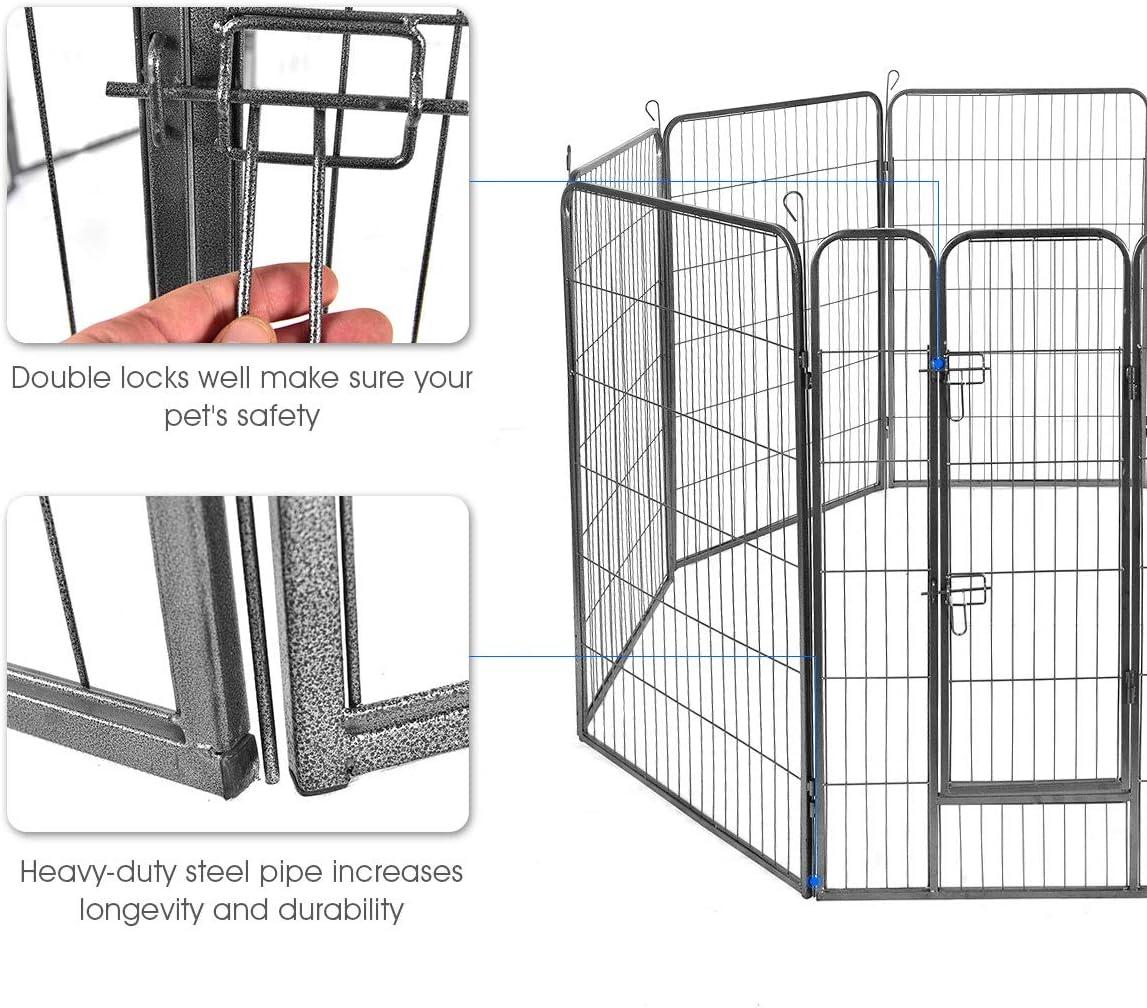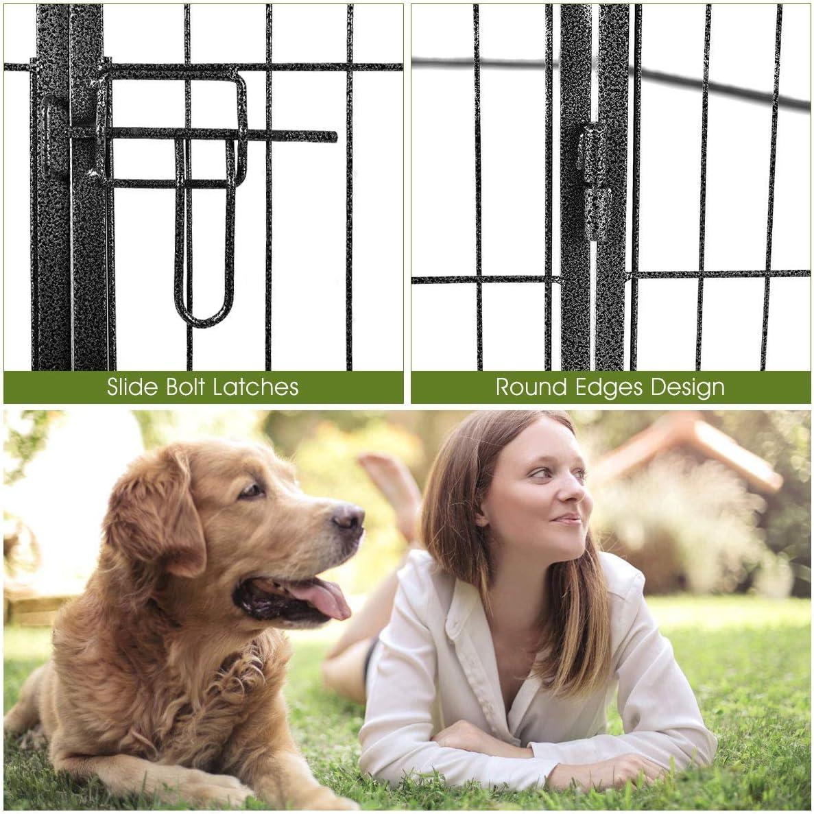 ️[ADDED SECURE DESIGN]The pet dog playpen not only confines your pets in the exact place to ensure safety, but also offers a handsome touch to your home or garden. Besides, its round edges keep your pet safe and away from scratching or injured. Door with double locks well makes sure your pet does not get loose.