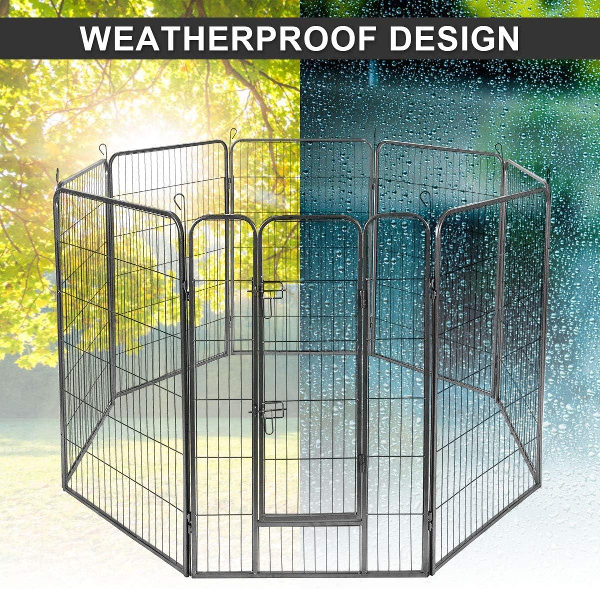 ️[HEAVY DUTY DOG PLAYPEN]Constructed with heavy duty metal material, our pet dog playpen is sturdy and durable enough for your long-time use. And it is rust proof and weather resistant, providing a comfortable and safe exercise pen perfect for safely restricting your furry friends especially for outdoor use. (The 16 panels dog playpen will come in 2 packages).