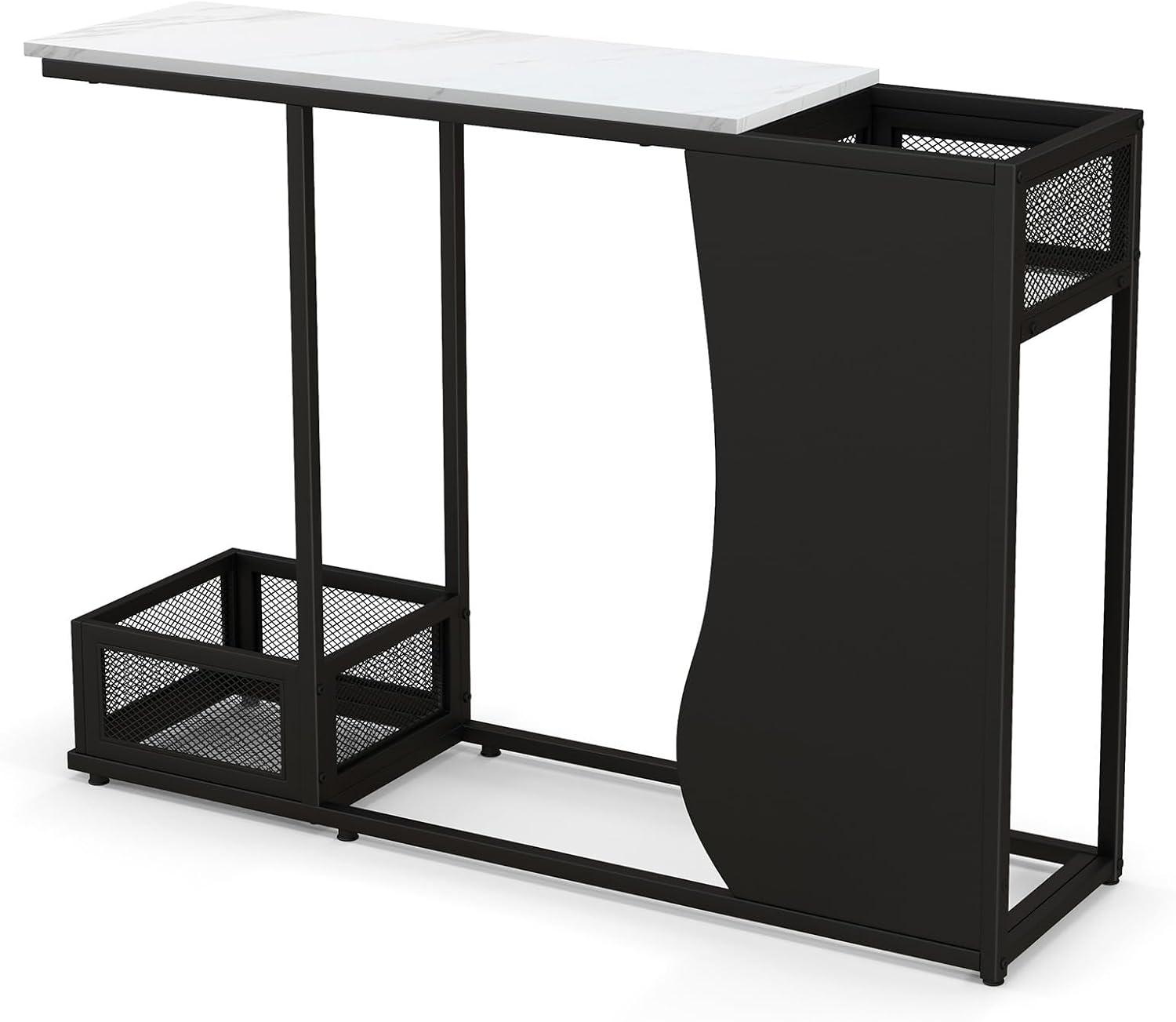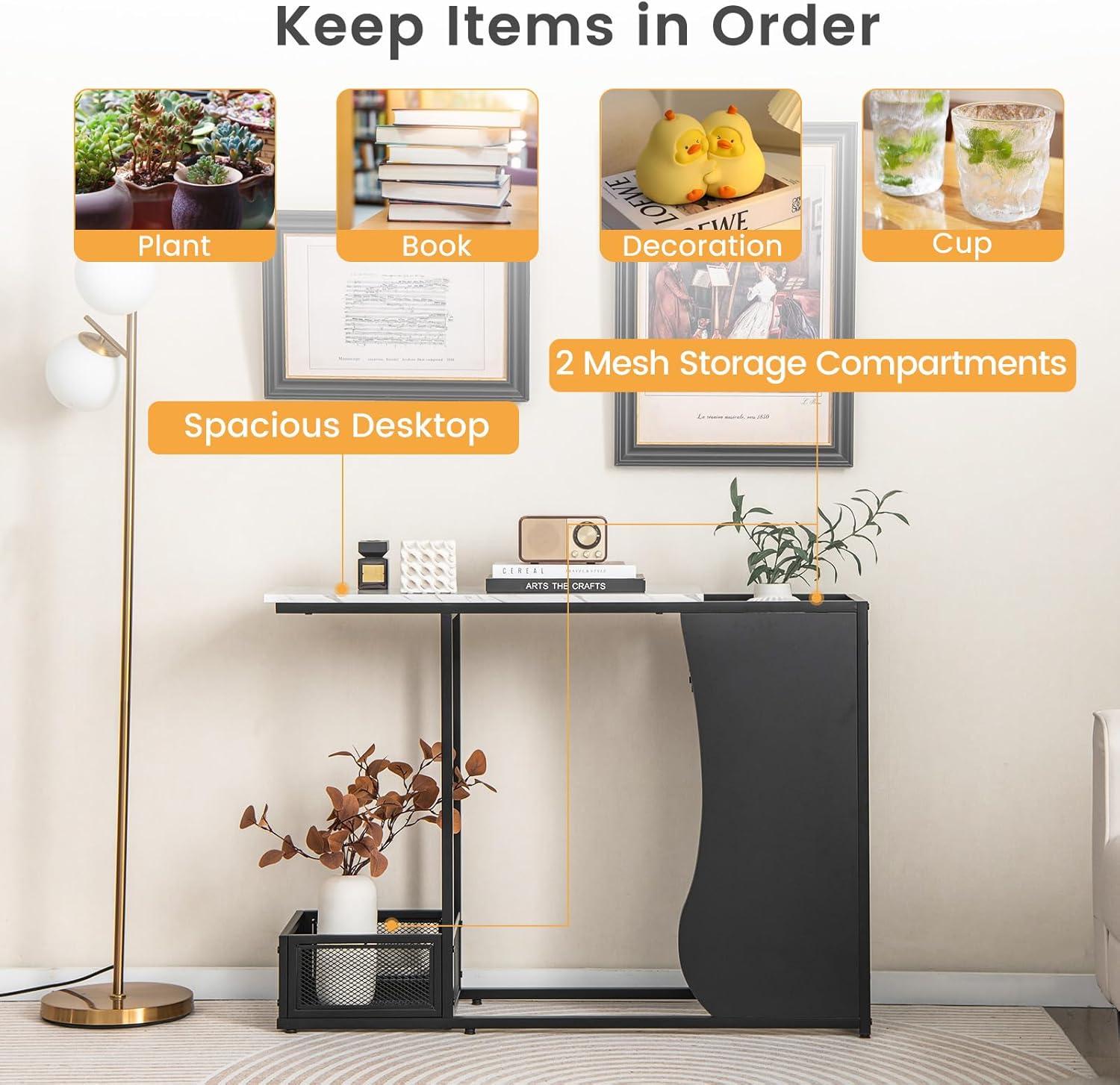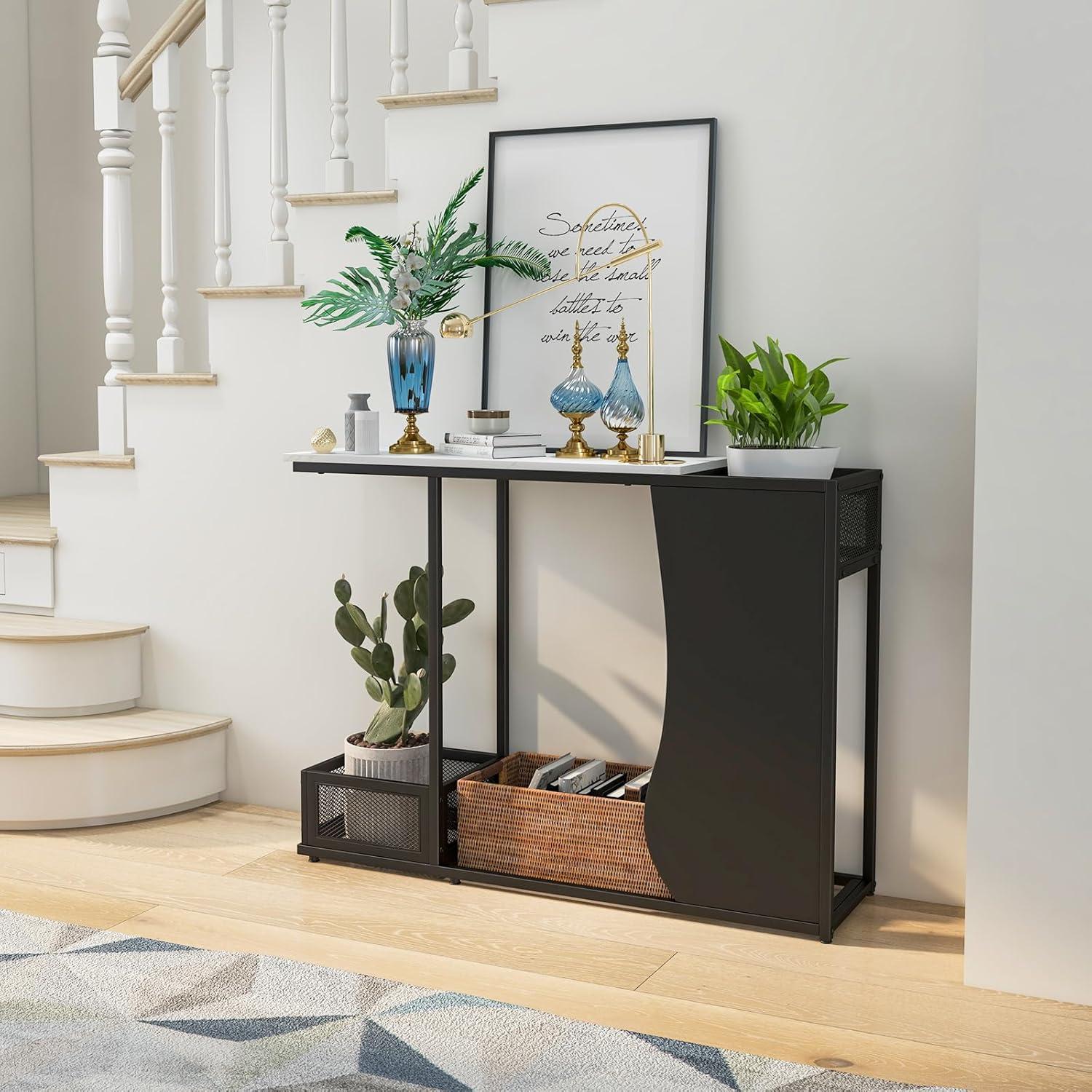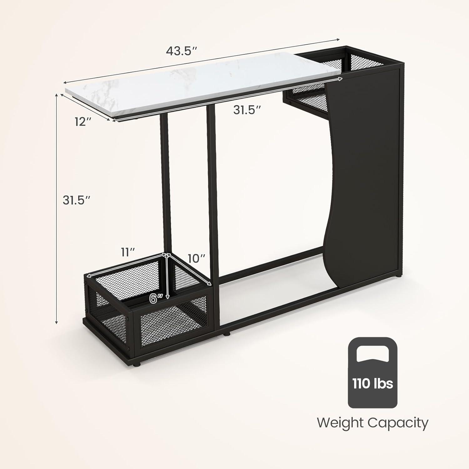 Giantex 43.5" Console Table for Entryway - Modern Entry Table with Faux Marble Top, 2 Mesh Storage Compartments, Metal Frame, Foyer Table, Narrow Sofa Table for Living Room, Hallway, White + Black
