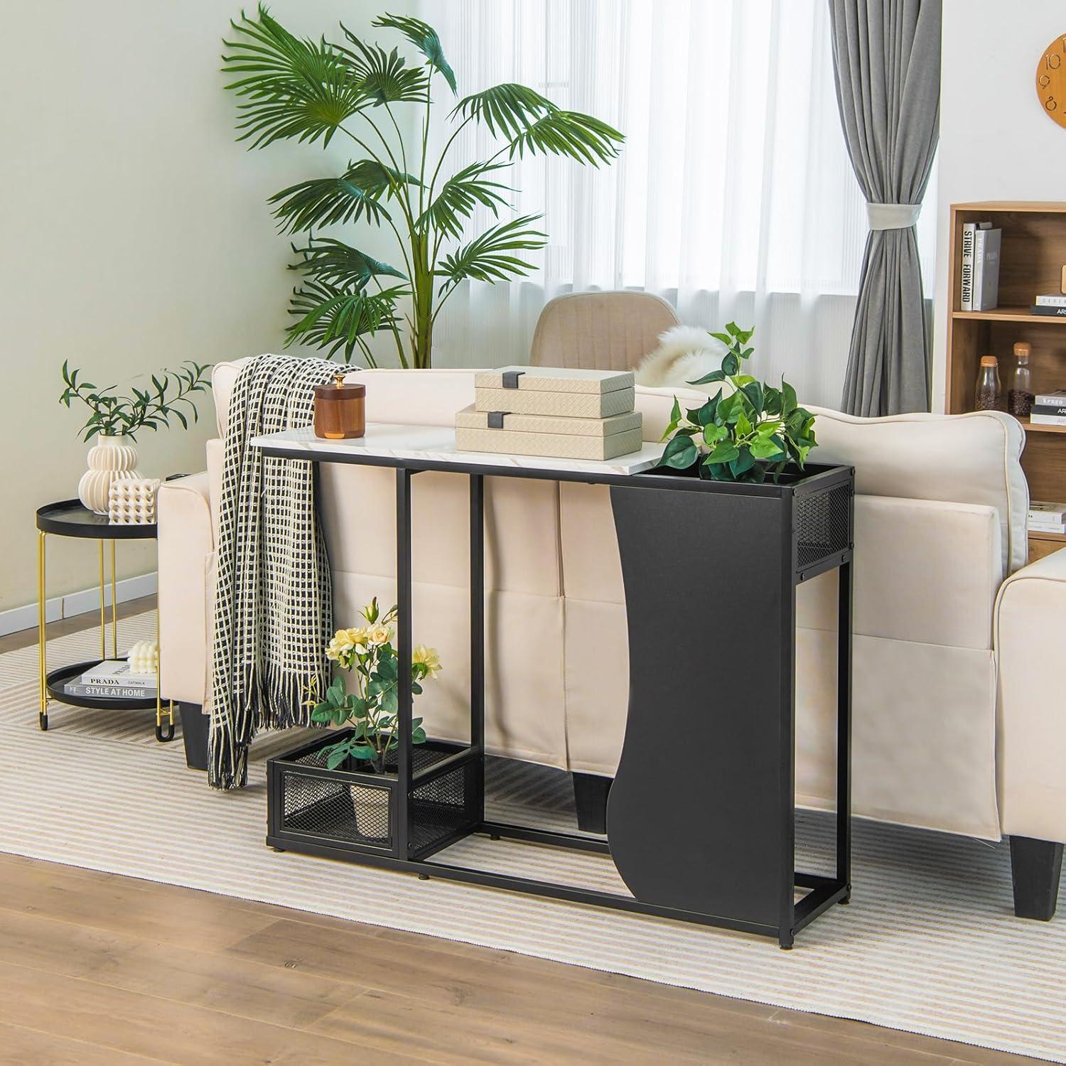The long console table comes with modern faux marble top to update your room layout and hold various items like cup, book and so on. Besides, the 2 mesh box are perfect for displaying plants you love. It is constructed of quality materials and has excellent stability and durability for reliable use. You can place the console table at the the back of your sofa or take it as a entryway table, side table for different demands.