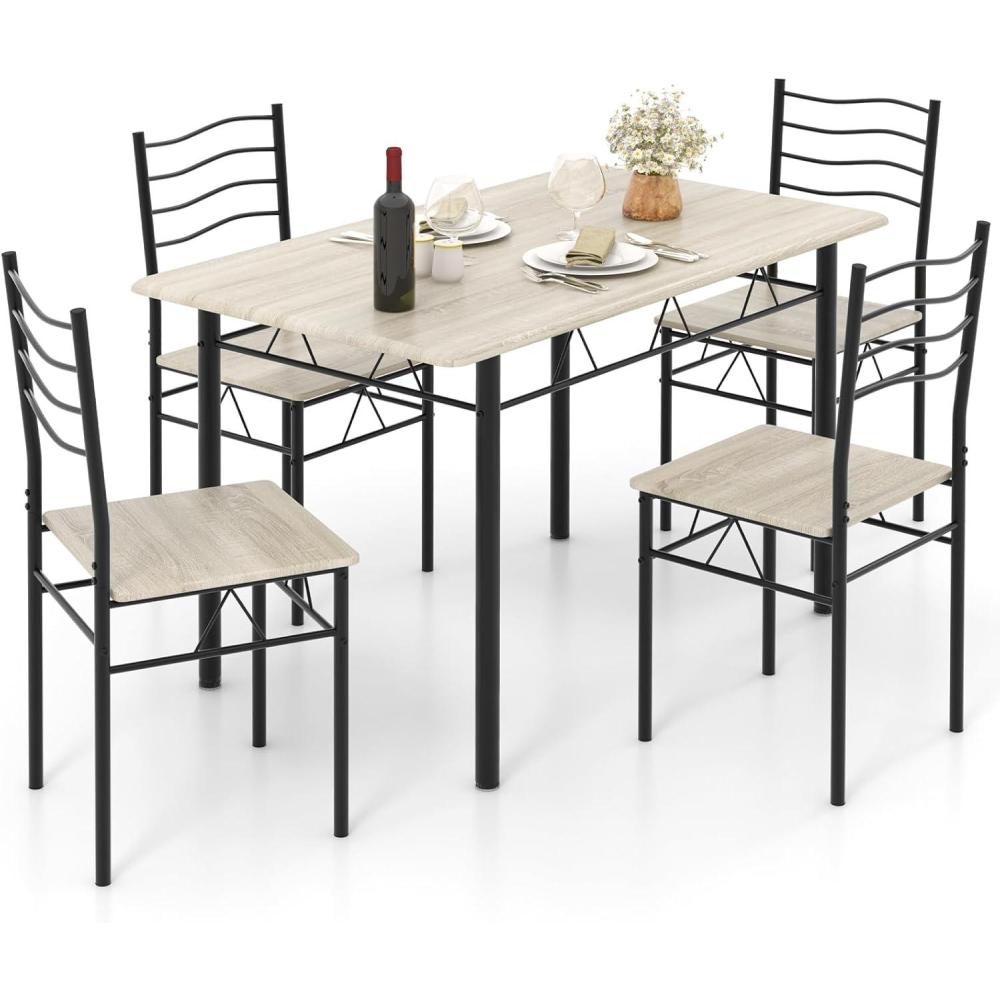 Giantex 47-inches Dining Table Set for 4, Rectangular Kitchen Table with 4 Dining Chairs, Metal Frame, 5-Piece Space-Saving Dinette Set for Small Space, Dinner, Breakfast Nook, Apartment, Natural(Beech)