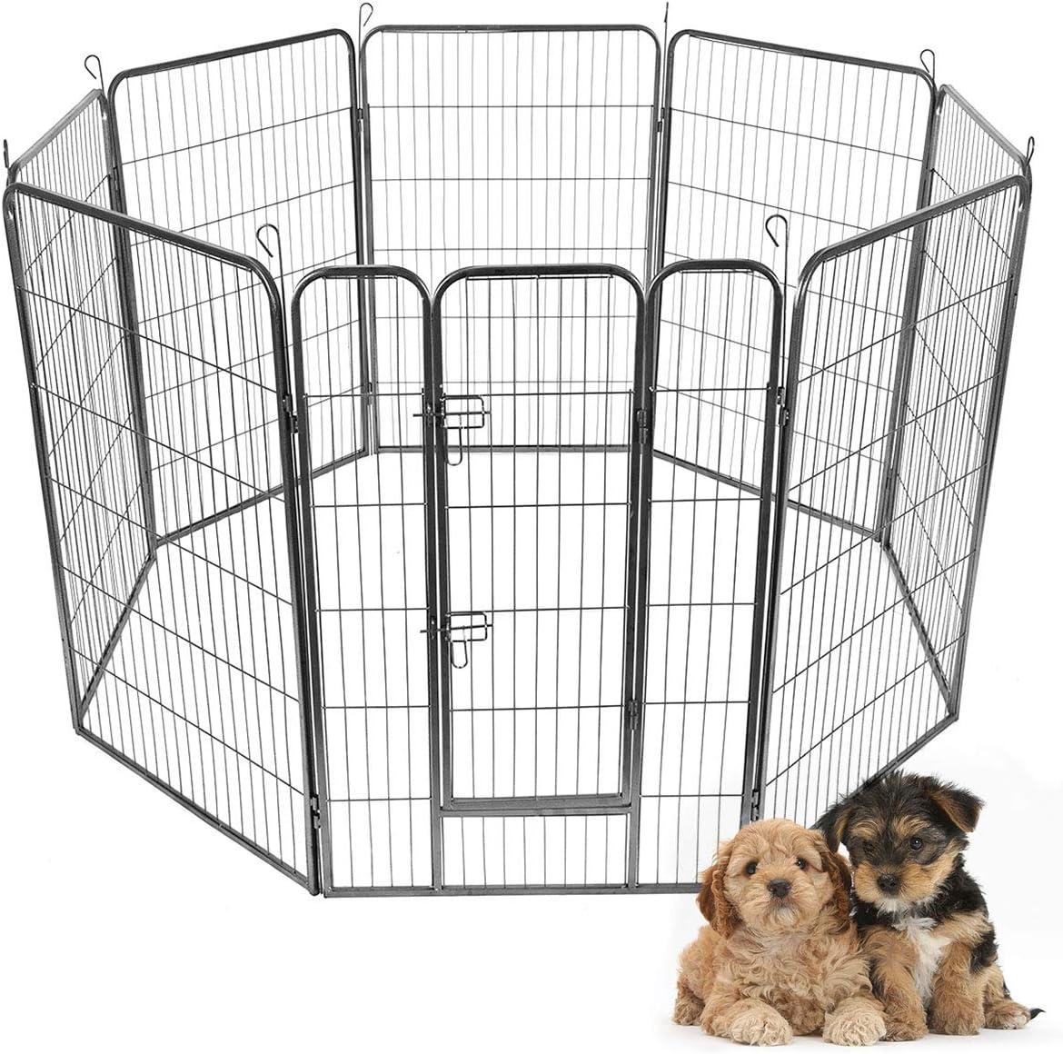 ️[EASY TO SET IT UP] This dog playpen comes with 8 panels and is quite easy for you to set it up or break it down. No tools are required during assembly. Besides, its foldable and portable features aim to convenient storage and transportation for you, which is good for both indoor and outdoor use.