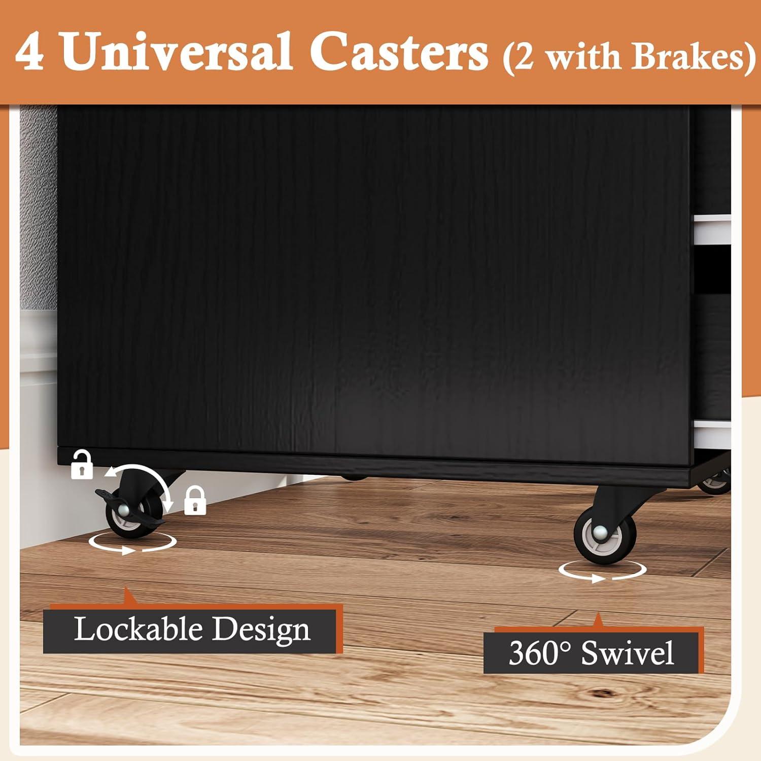 4 flexible casters allow easy movement and locking of the cabinet.