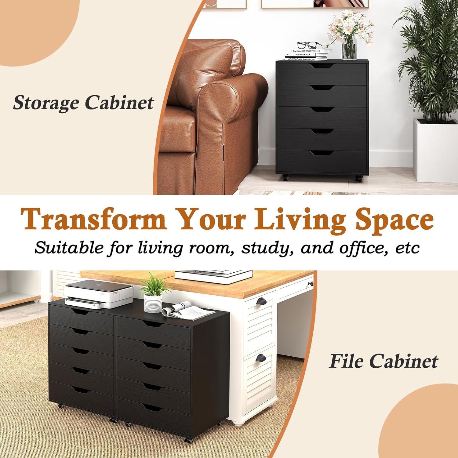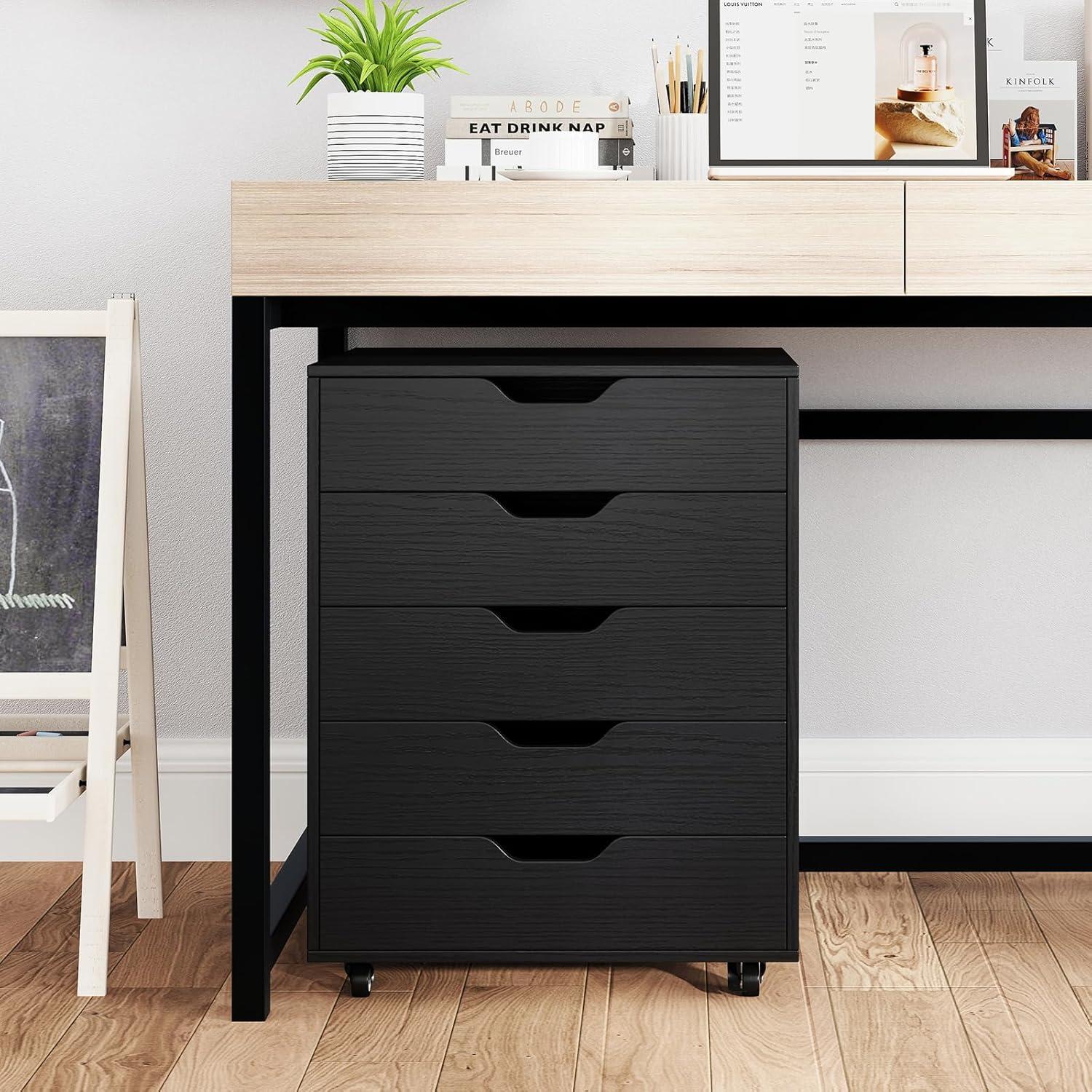 [5 Drawers to Reduce Clutter]: With 5 pull-out drawers, this mobile file cabinet offers ample storage space for documents, office supplies, and personal items, while the cabinet top provides additional display space to keep your workspace organized and tidy.