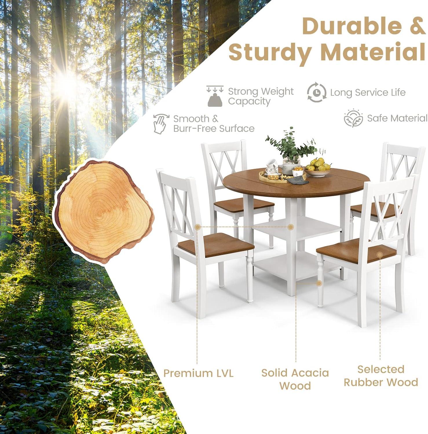 The foldable drop leaf design is perfect for your family to enjoy meal times