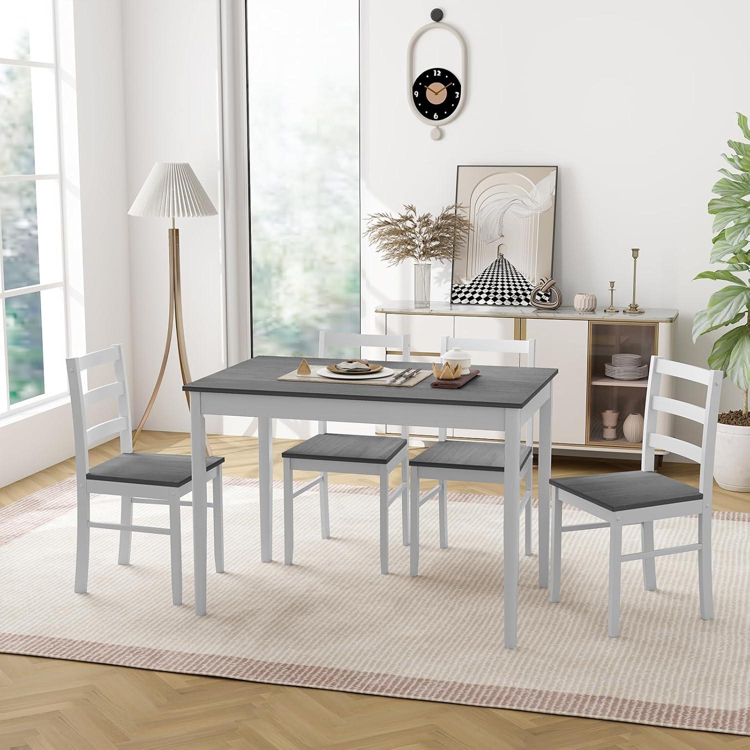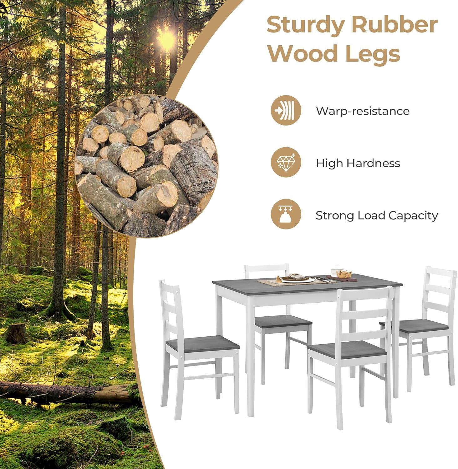 Giantex 5-Piece Dining Set for 4, Solid Wood Rectangular Table & 4 Chairs wtih Rubber Wood Legs, Kitchen Table and Chairs Set for Small Spaces Dinette Dining Room Restaurant (Rustic Brown)(Grey)