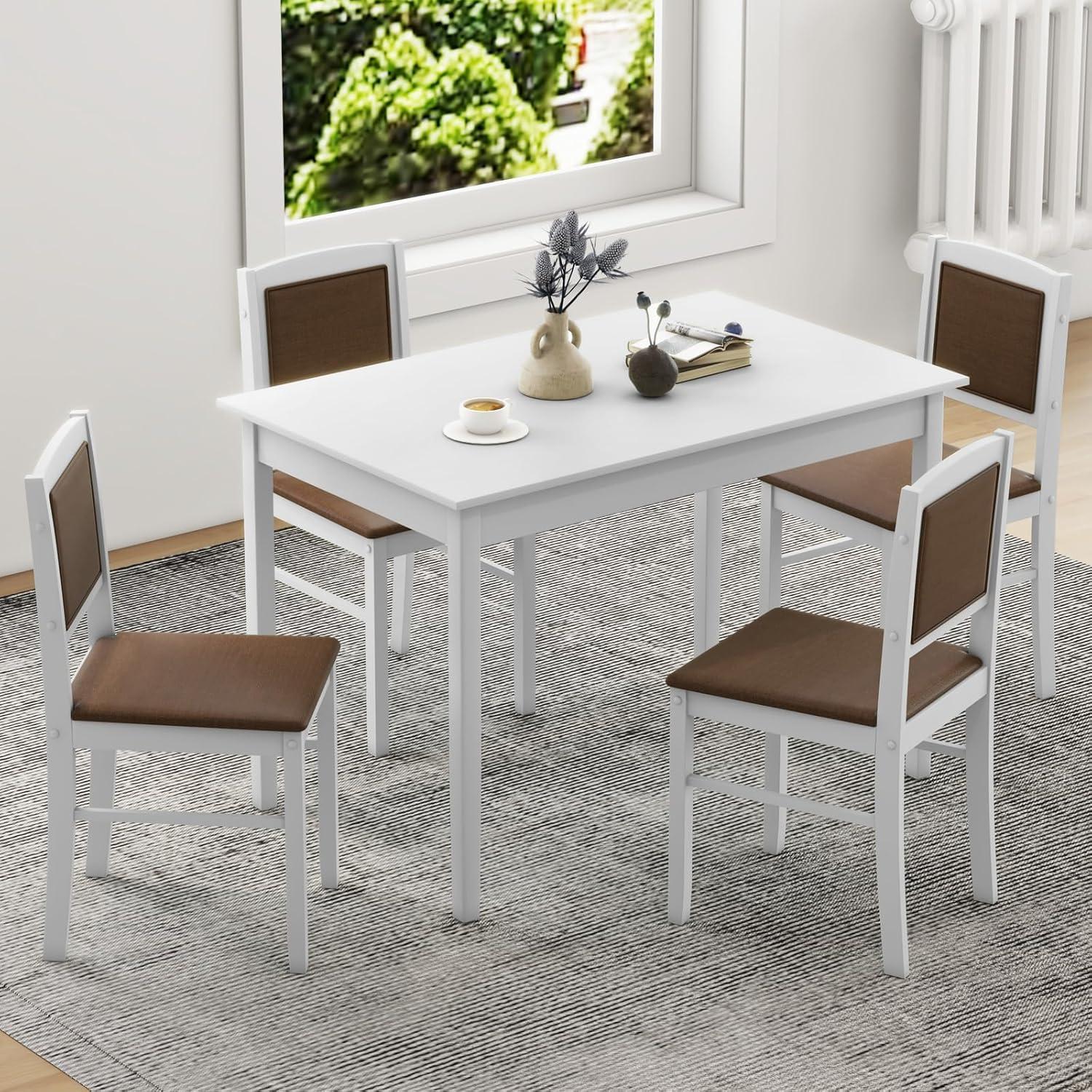 Giantex 5-Piece Dining Set for 4, Solid Wood Rectangular Table & 4 Chairs wtih Rubber Wood Legs, Kitchen Table and Chairs Set for Small Spaces Dinette Dining Room Restaurant (Rustic Brown)(White+beige)