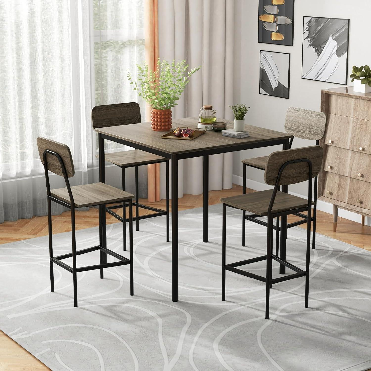 5-Piece Counter Height Dining Table Set: The dining table set features a counter height dining table and 4 bar stools, allowing you to enjoy delightful dining or drinking time with family or friends. In addition, with the clean lines and delicate wood grain finish, the industrial table set can perfectly blend into any room decoration.