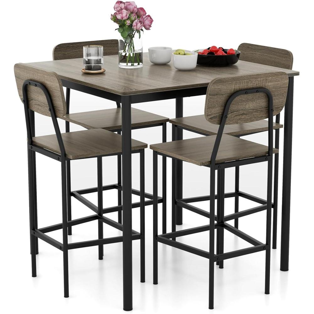 imageGiantex 5Piece Dining Table Set WCounter Height Table ampamp 4 Bar Stools Industrial Kitchen Dining Table Set WFootrest ampamp Backrest SpaceSaving Dinette Set for Pub Dining Room Restaurant TeakMix Brown