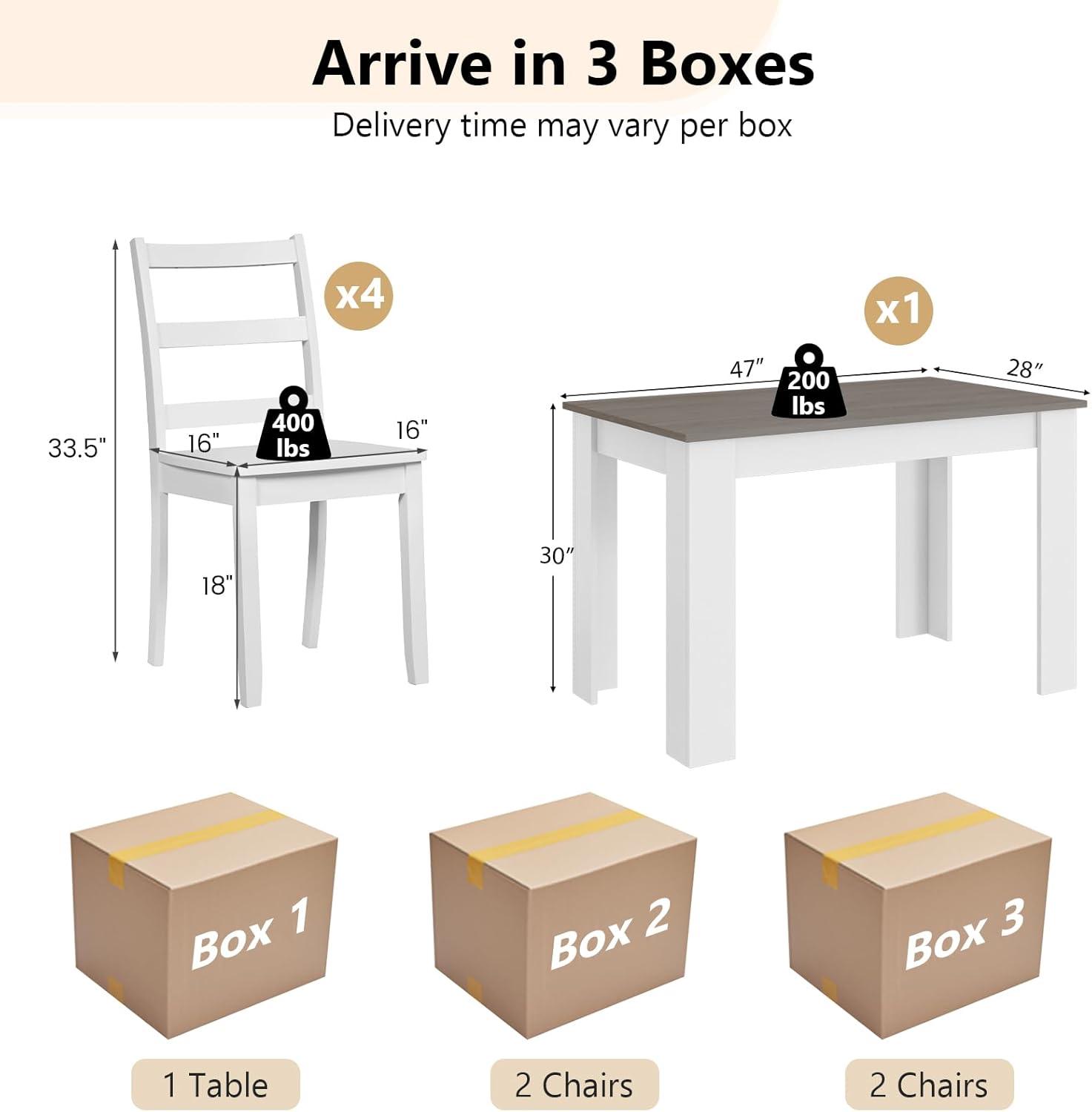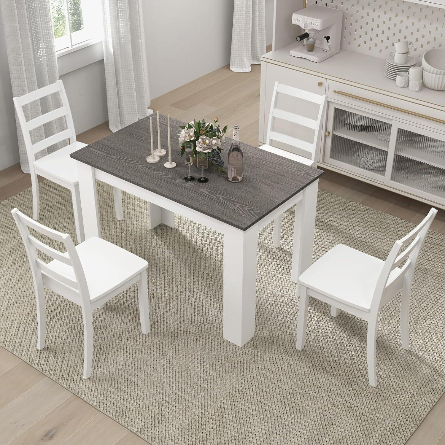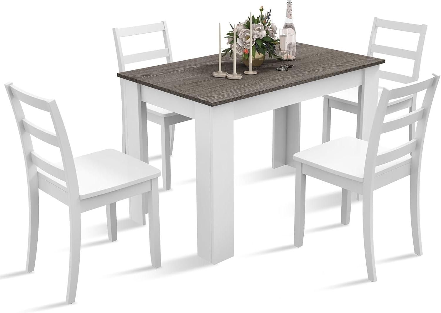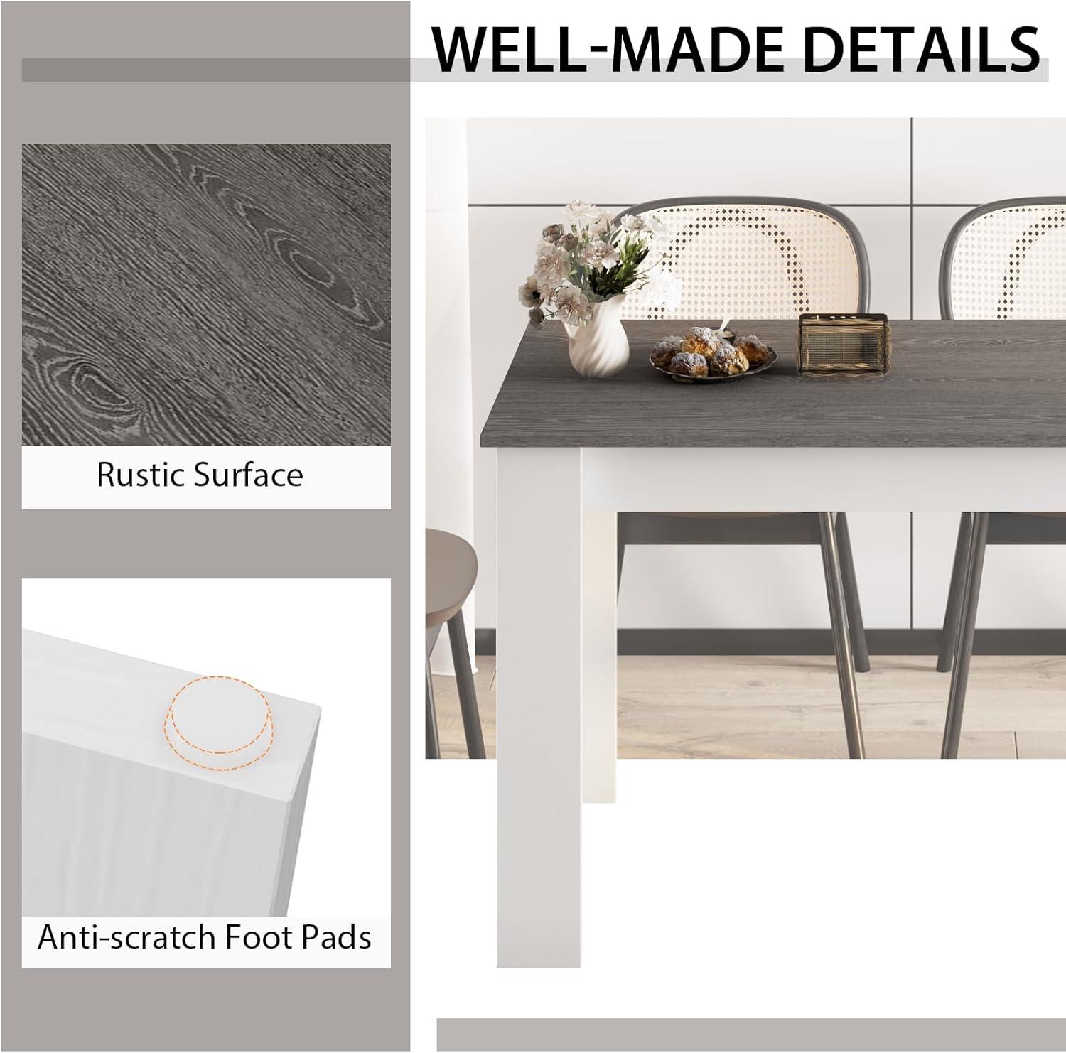 The set consists of 1 large rectangle dining table and 4 chairs, which is perfect for family meals or hosting guests. Made of high-quality and thick board, the tabletop can support up to 220 lbs of weight and is easy to clean. The bottom anti-slip foot pads prevent scratches on your floor, while enhancing stability. Besides, the chairs with solid rubber wood legs ensure higher sturdiness and durability. The ergonomic backrest and large seat ensure maximum comfort. With elegant appearance and comfortable seating, this dining table and chairs set is the perfect addition to any dining area.