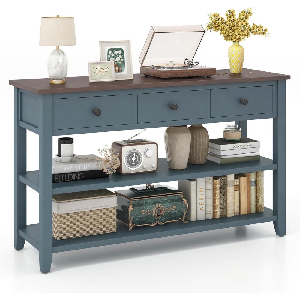 √The entryway table is equipped with 3 drawers and 2 shelves for storage.