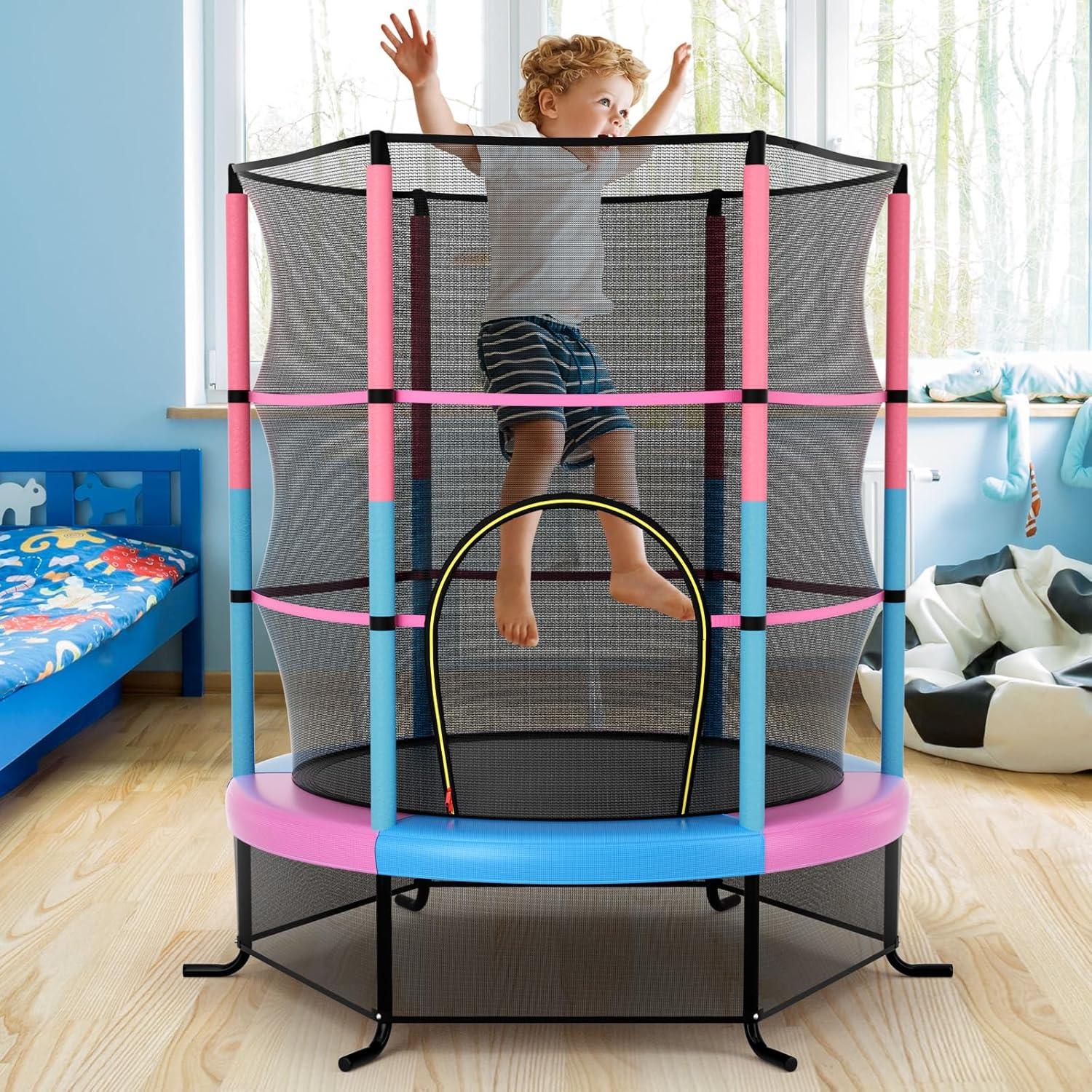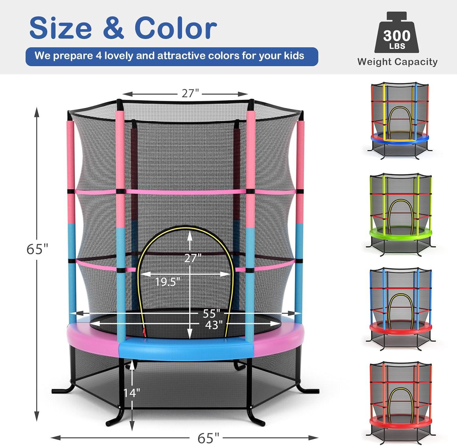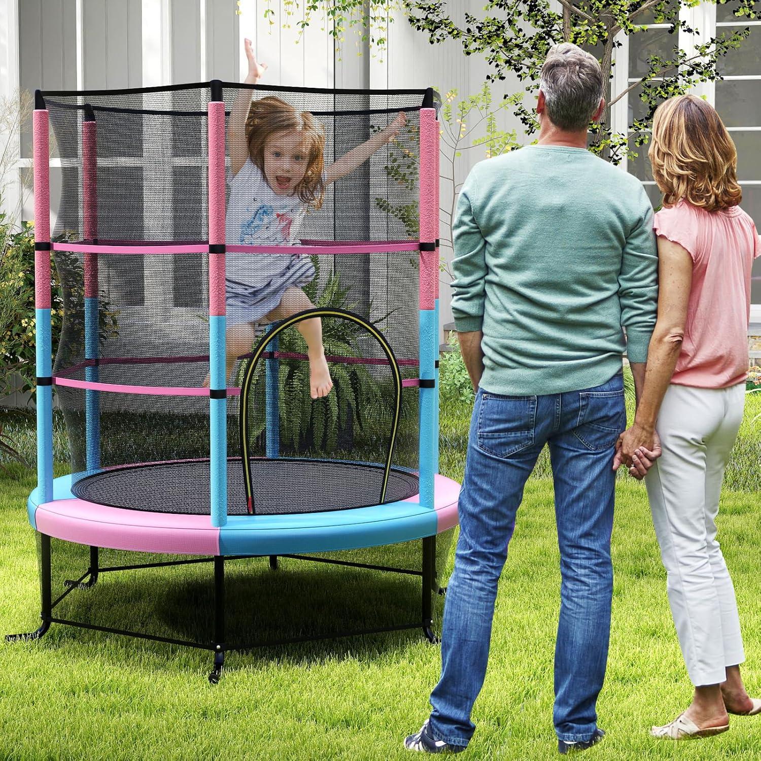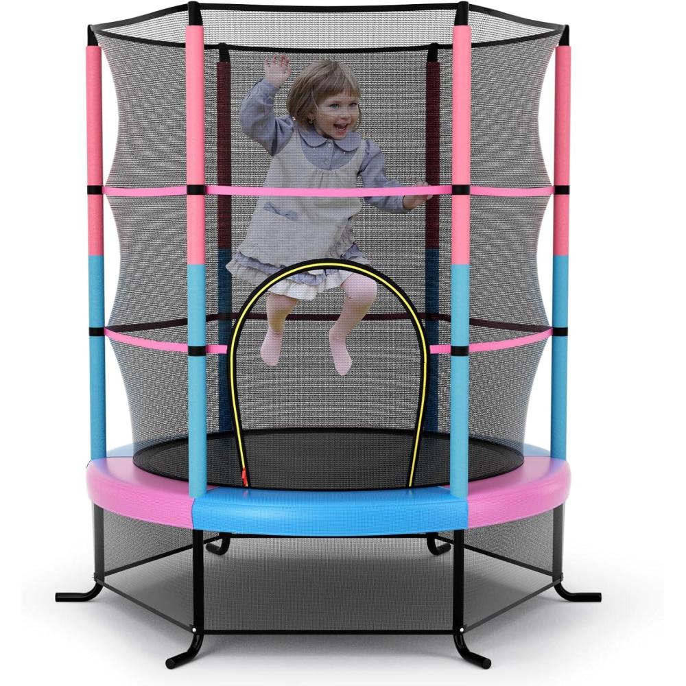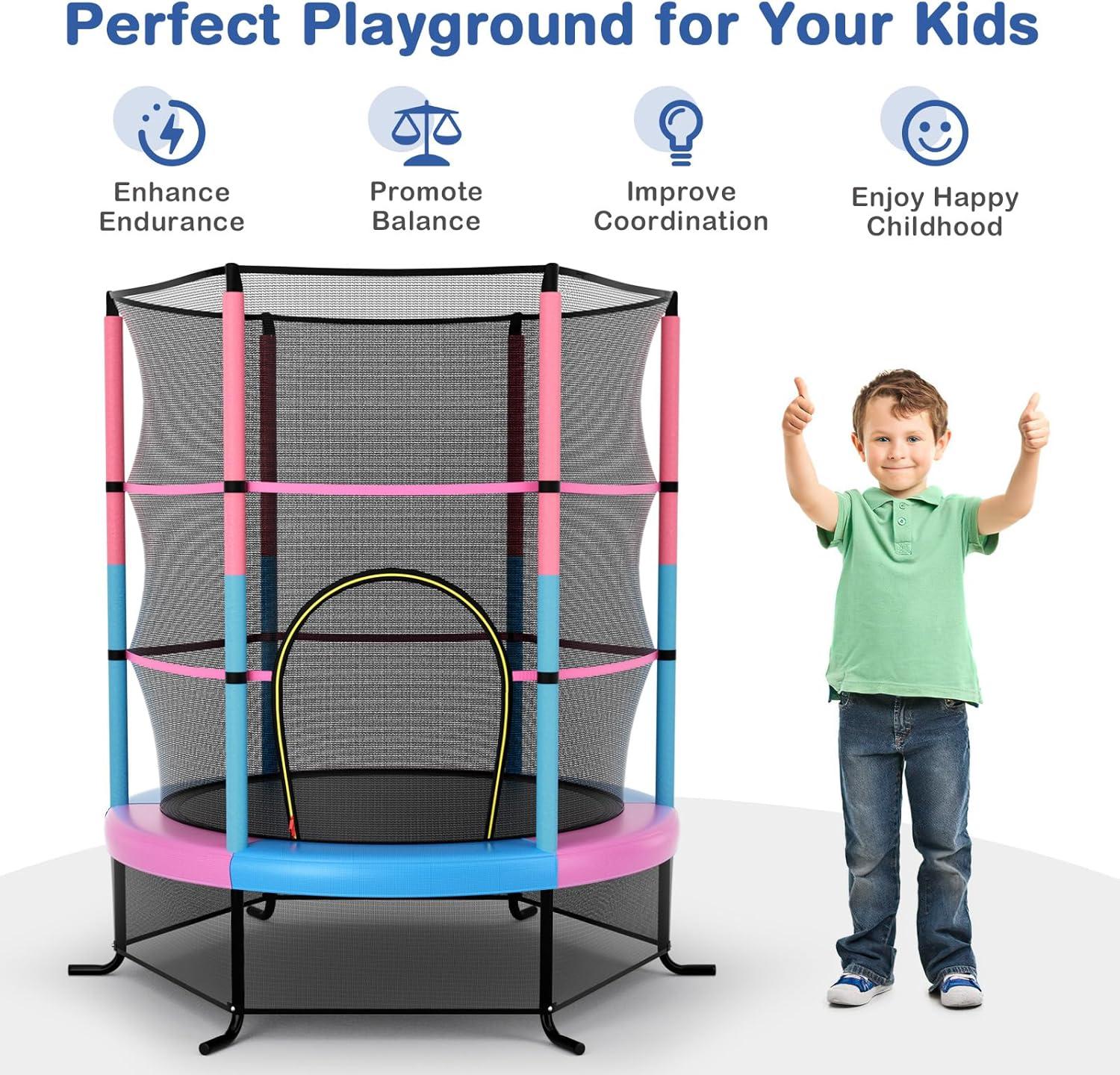 Giantex 55” Mini Kids Trampoline With Safety Enclosure Net, ASTM Approved, No-Gap Safe Design, Easy to Assemble 4.6 Ft Outdoor Indoor Small Toddler(Pink+Blue)