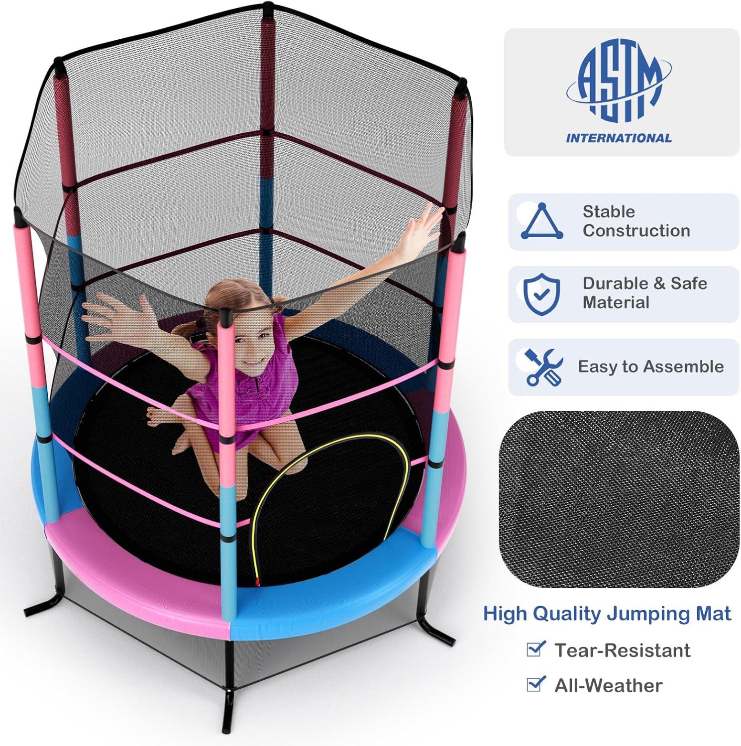 Giantex 55” Mini Kids Trampoline With Safety Enclosure Net, ASTM Approved, No-Gap Safe Design, Easy to Assemble 4.6 Ft Outdoor Indoor Small Toddler(Multicolor)