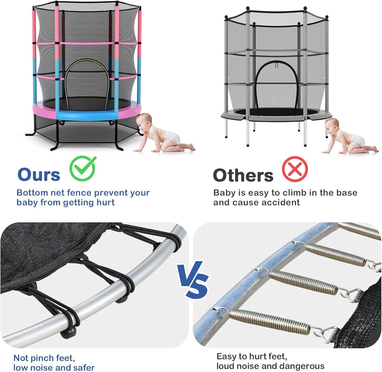 [ Protective Padded Frame ] With full safety enclosure net, the kids trampoline will give you the confidence to let your little one bounce around in peace! And the foam tube can protect your kid from injury, ensuring the full safety of your little children.