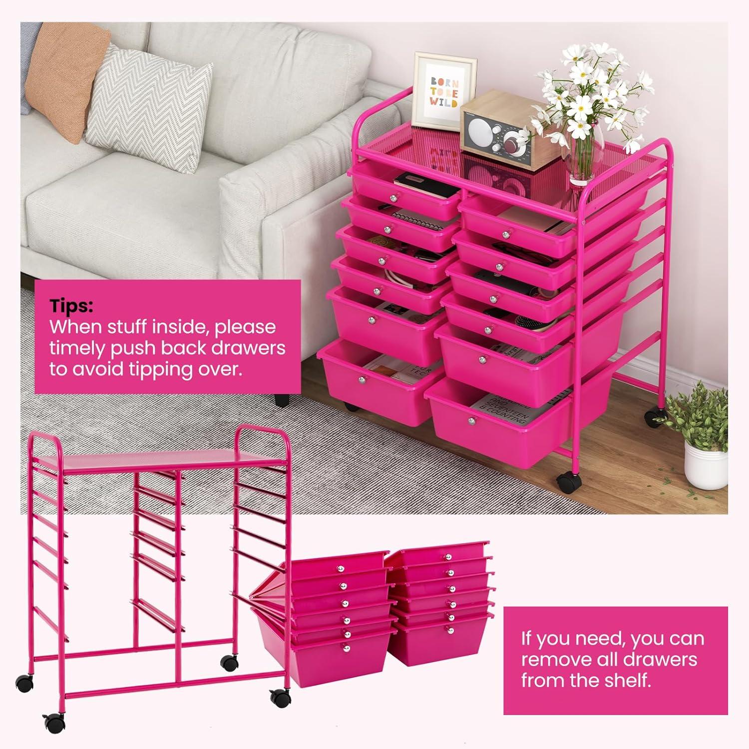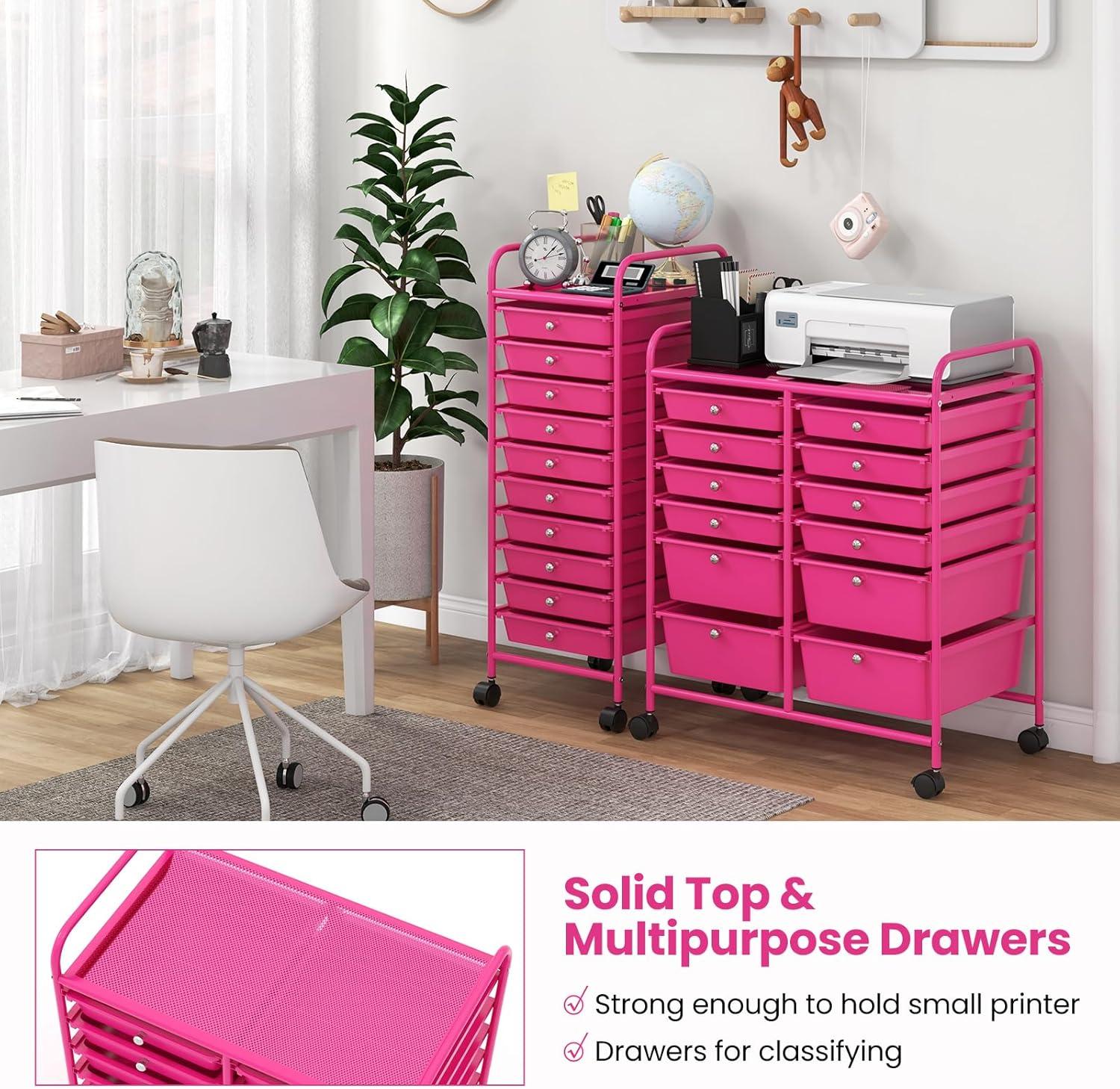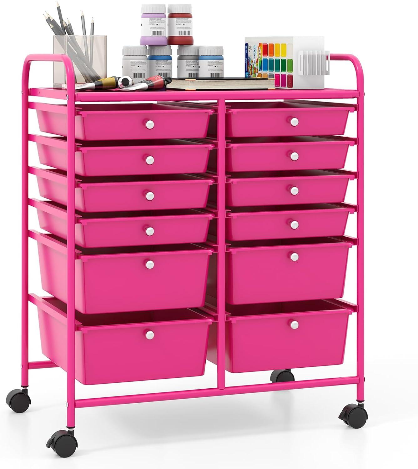 Giantex 6 Storage Drawer Cart Rolling Organizer Cart for Tools Scrapbook Paper Home Office School Multipurpose Mobile Utility Cart (Ivory)(Hot Pink)