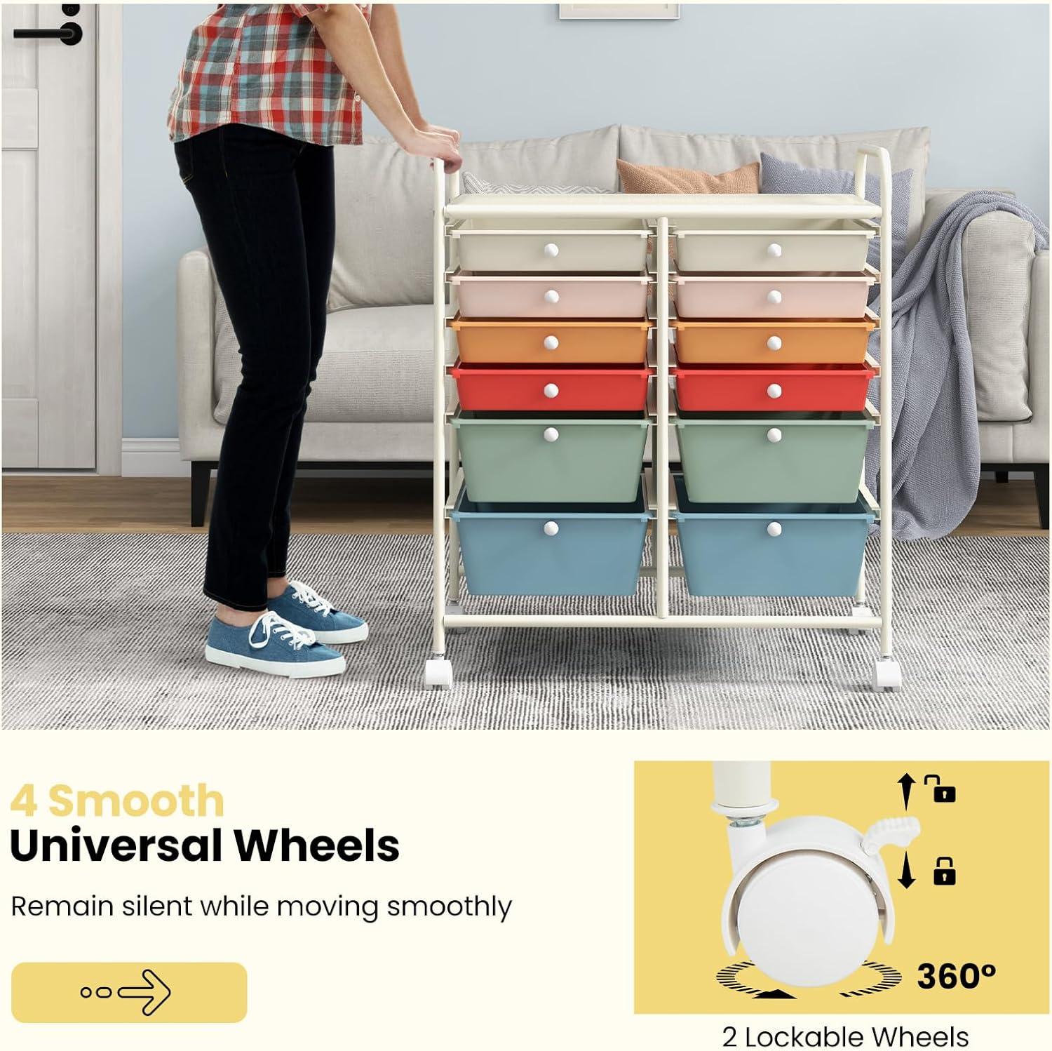 [Flexibility and Mobility]: Four universal wheels can swivel 360 degree and help you move it easily. This drawer cart is easy to be assembled with all hardware and detailed manual. Lockable brake design ensures its stability if you want it stay at some certain place.