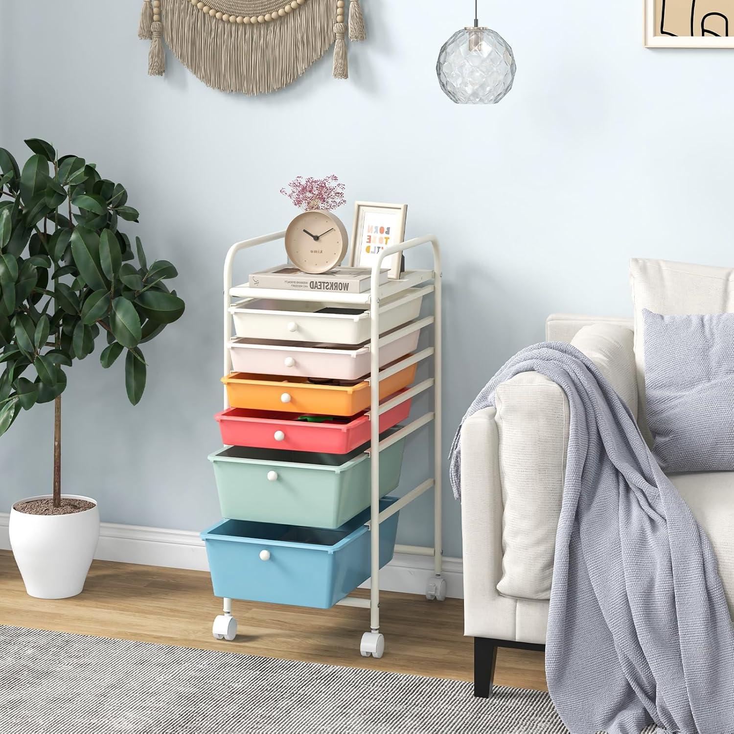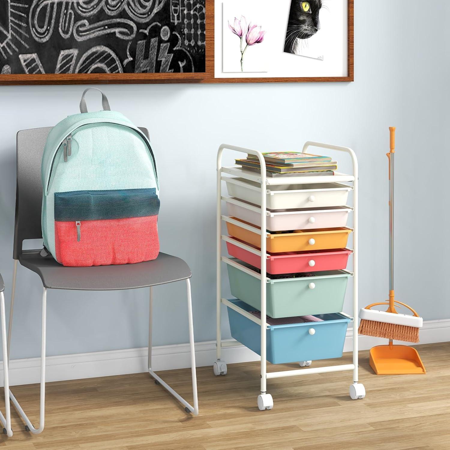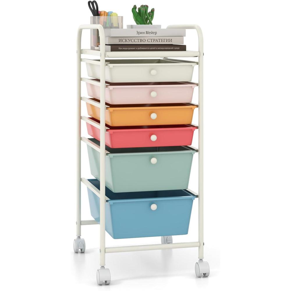 Giantex 6 Storage Drawer Cart Rolling Organizer Cart for Tools Scrapbook Paper Home Office School Multipurpose Mobile Utility Cart (Ivory)(Macaron)