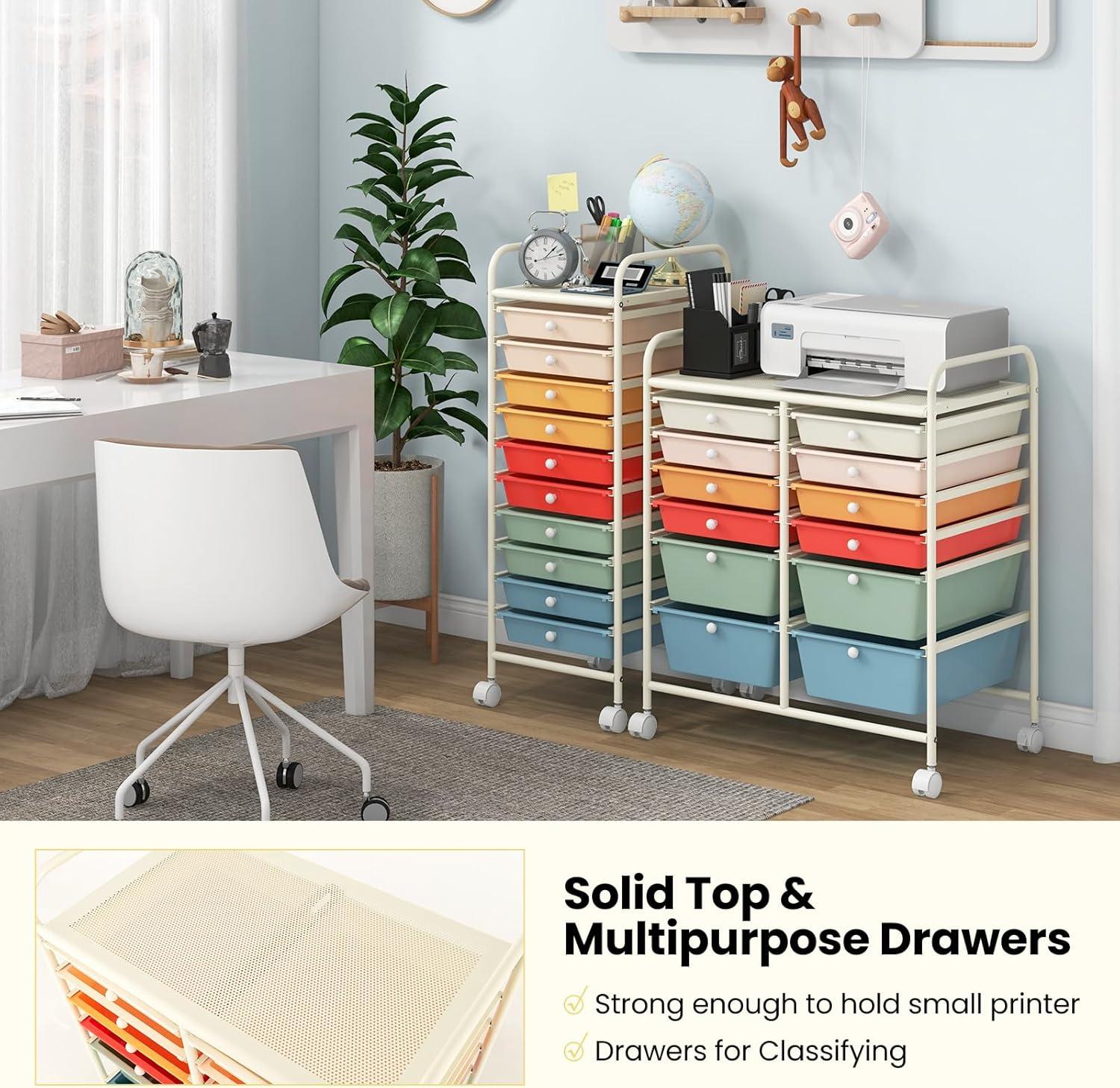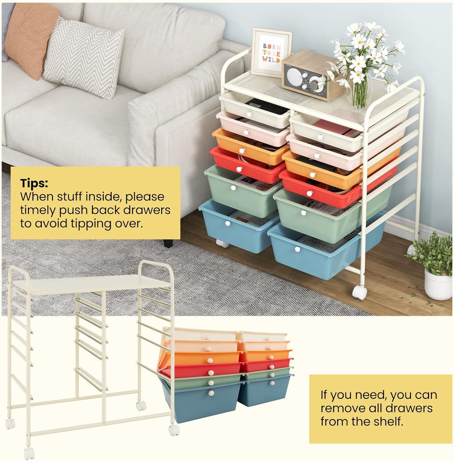 [6 Drawers Offering Sufficient Storage Space]: Giantex 6 drawer rolling storage cart includes 2 big drawers and 4 small drawers which provide ample space for you to store stuff by different categories.