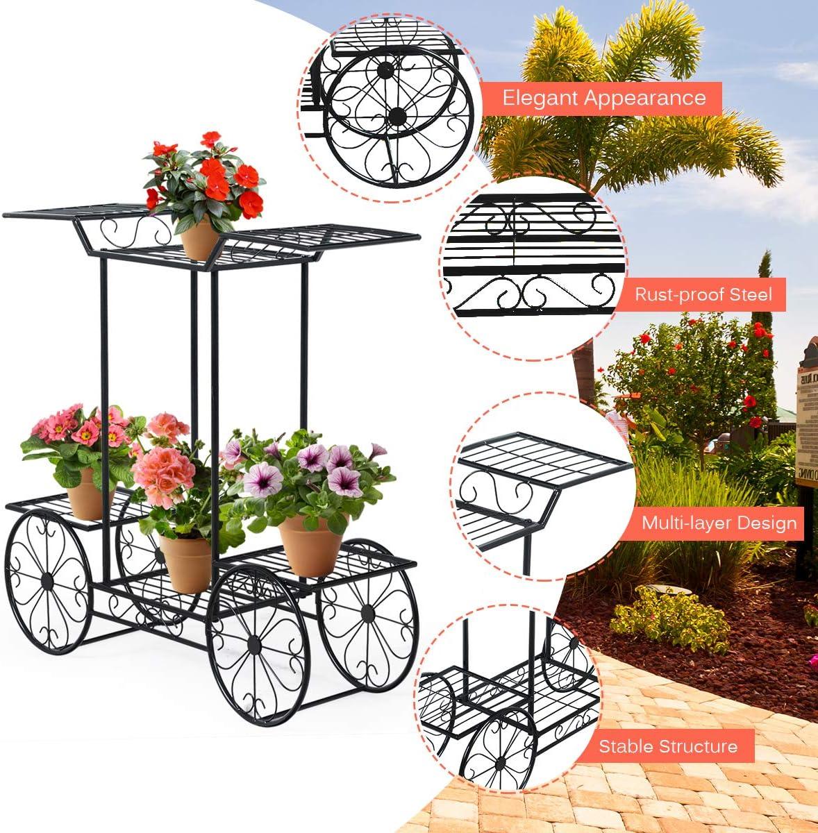 Giantex 6-Tier Plant Stand Flower Pot Holder Metal Flower Display Shelf with 4 Decorative Wheels Multilayer Parisian Style Plant Pot Holder Rack for Indoor, Garden, Patio, 32″L x 10″Wx 30″H, Black