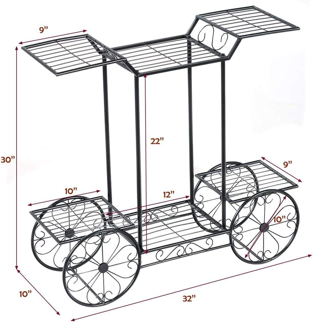 [Parisian Style Plant Stand]Parisian style cart and 4 decorative wheels with heart-shaped curved line, this plant stand looks more unique and exquisite and will be a charming decoration for your home, garden and patio.
