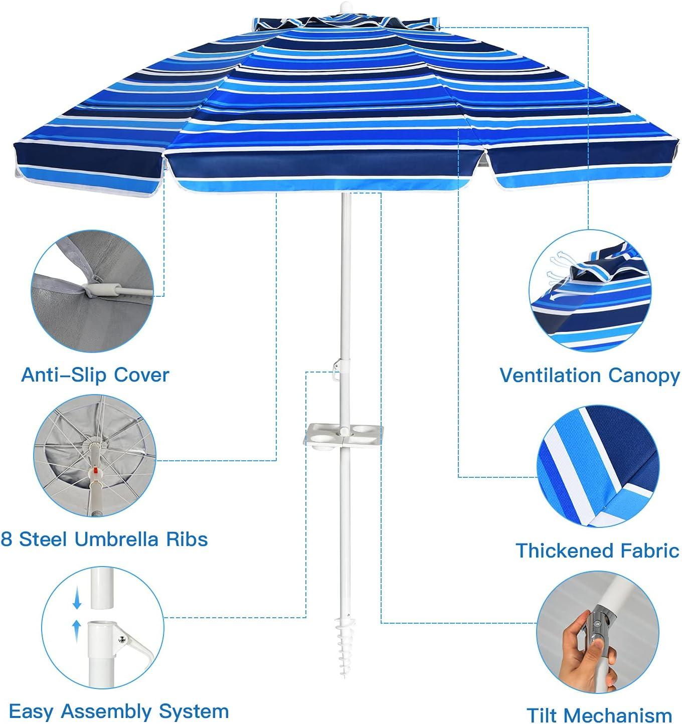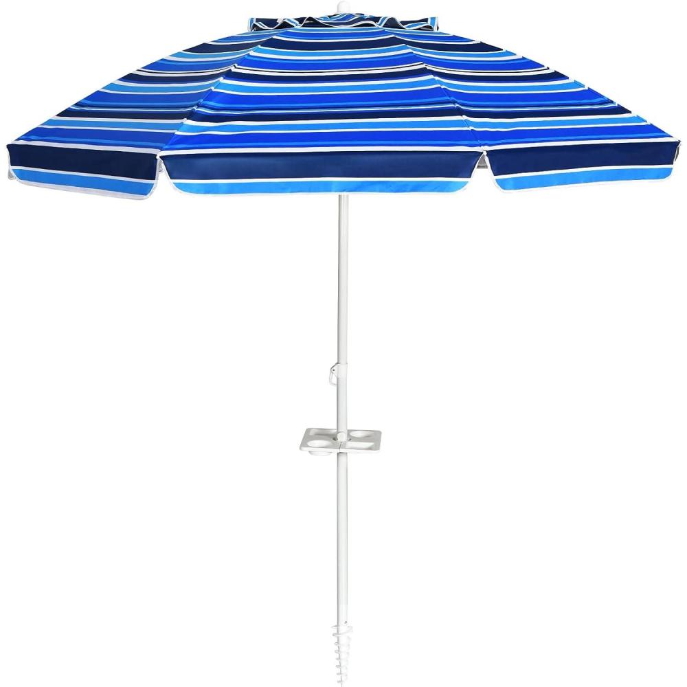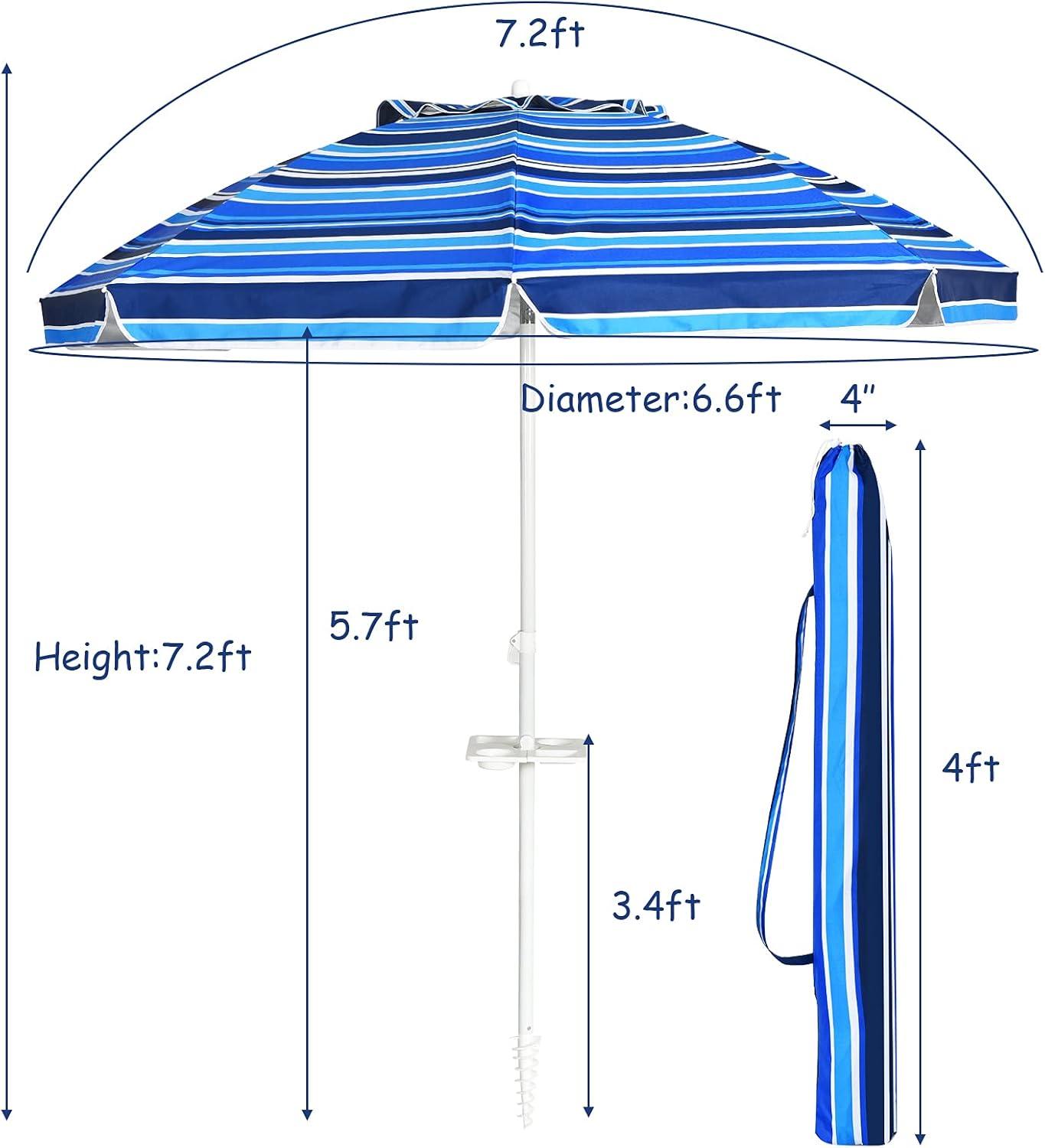 Giantex 7.2 Ft Beach Umbrella, Patio Sunshade Umbrella with Sand Anchor & Cupholder, Solid Steel Pole, Carrying Bag, Portable Sun Shelter Suitable for Seaside, Backyard, Poolside, Market Entrance(Blue)