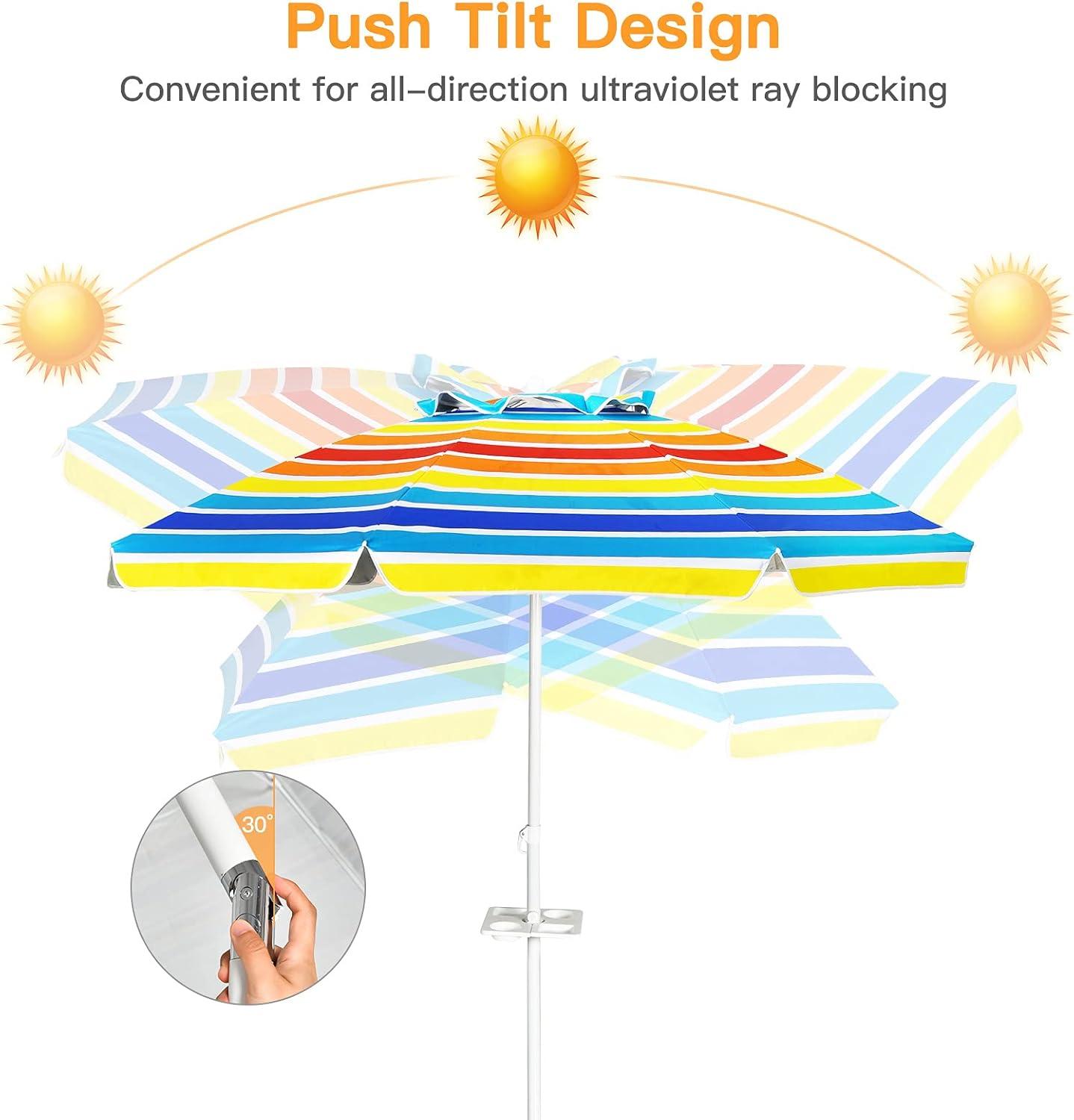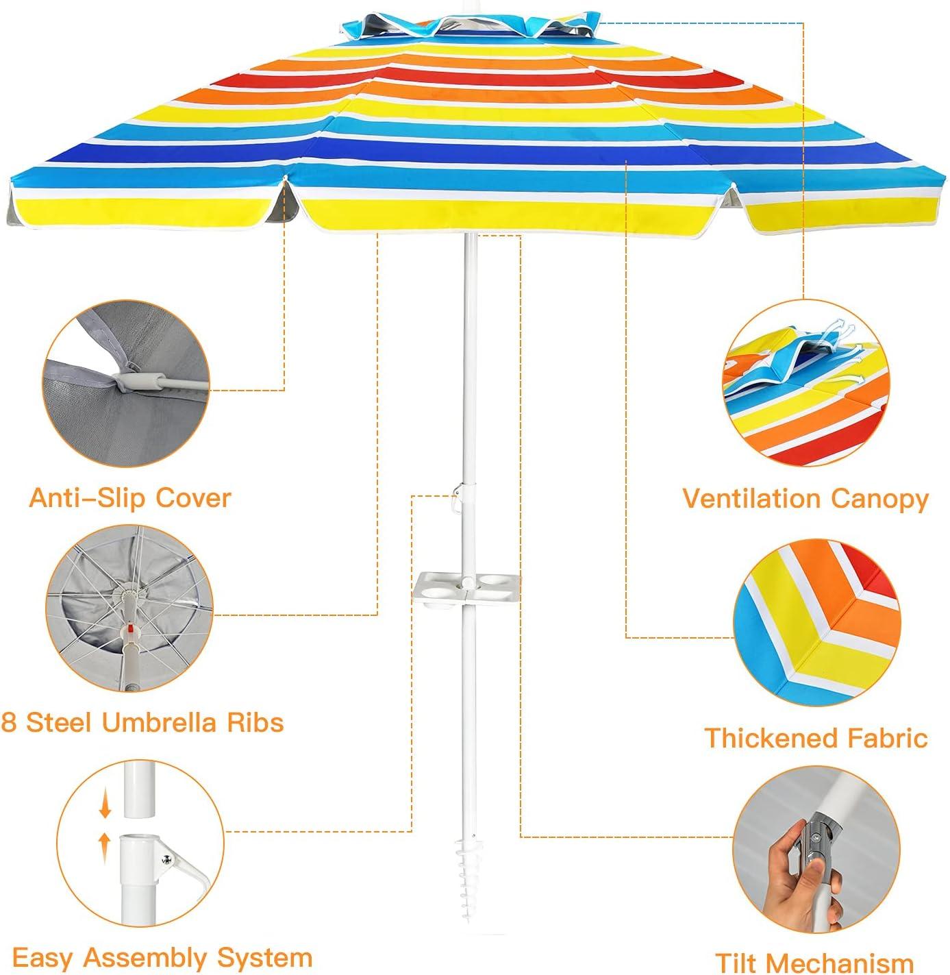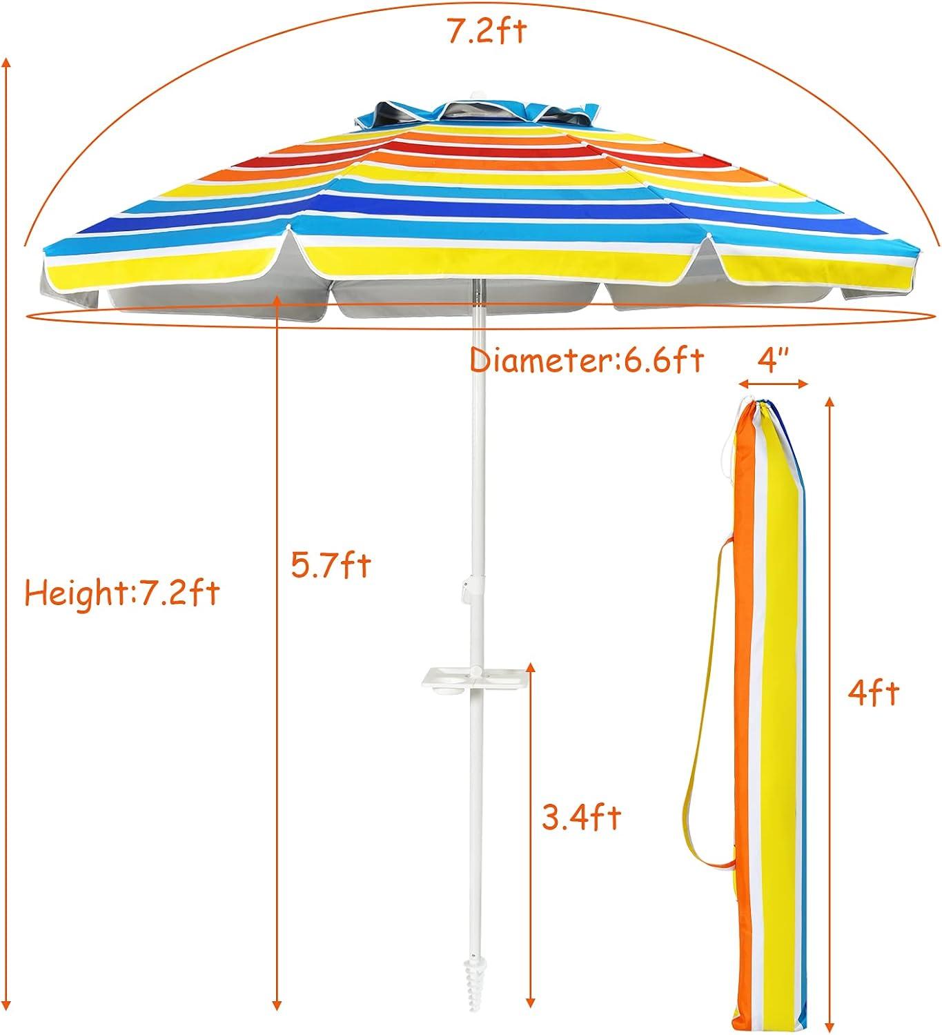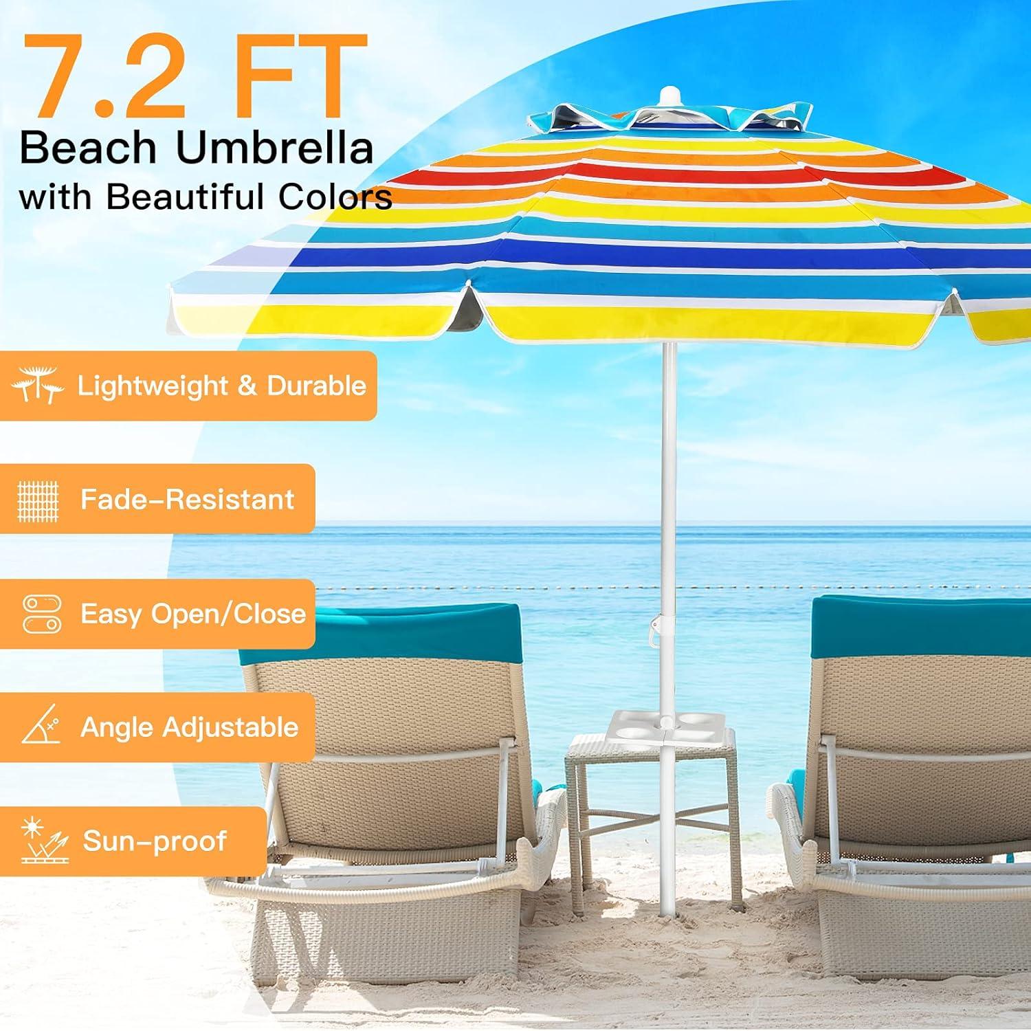 Giantex 7.2 Ft Beach Umbrella, Patio Sunshade Umbrella with Sand Anchor & Cupholder, Solid Steel Pole, Carrying Bag, Portable Sun Shelter Suitable for Seaside, Backyard, Poolside, Market Entrance(Rainbow)